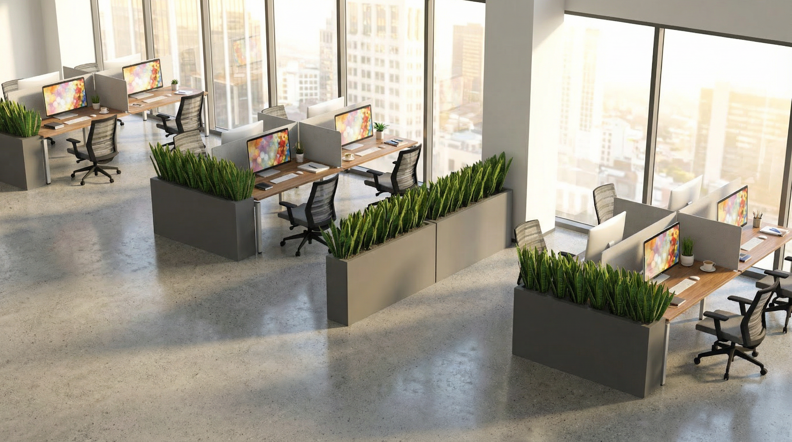 add computer and decor on the desk keep furniture the same make the room brighter keep the table the same color