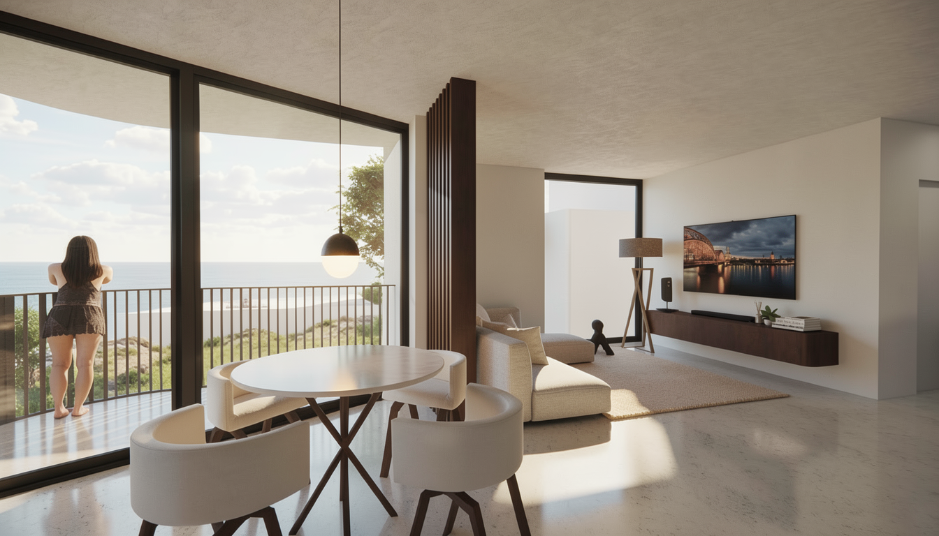 make render like the sketch is light warm soft cozy space ad more light pouf under the mirror is orange color behind the mirror is led light drawing above the bed is same like on sketch