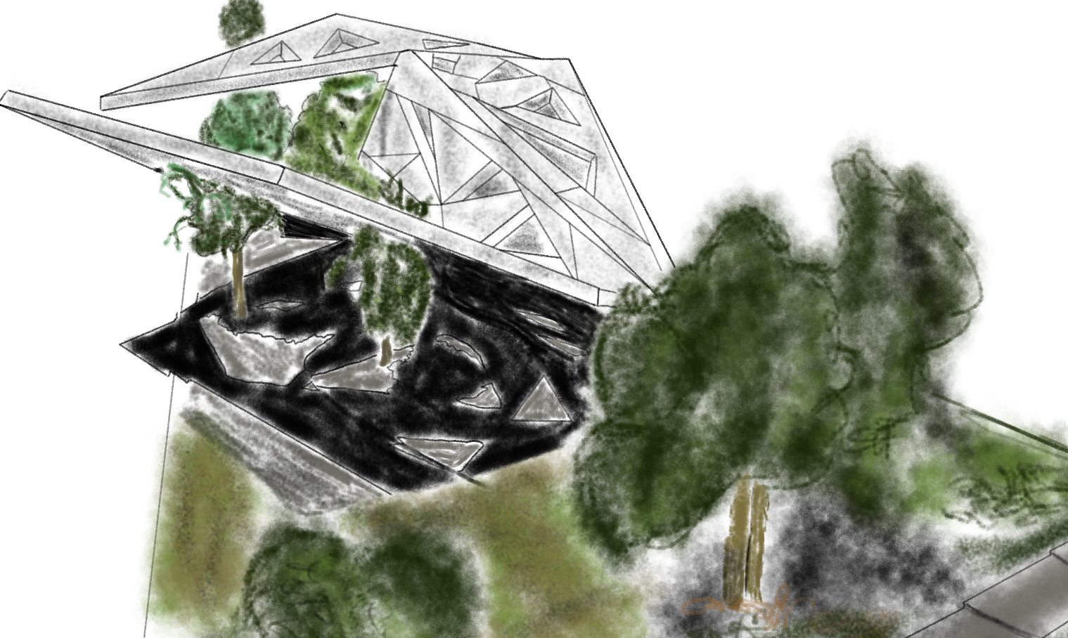 modernist perspective shot black parts are shadows on a concrete floor grey structure is a white aluminium structure with no glass architecture