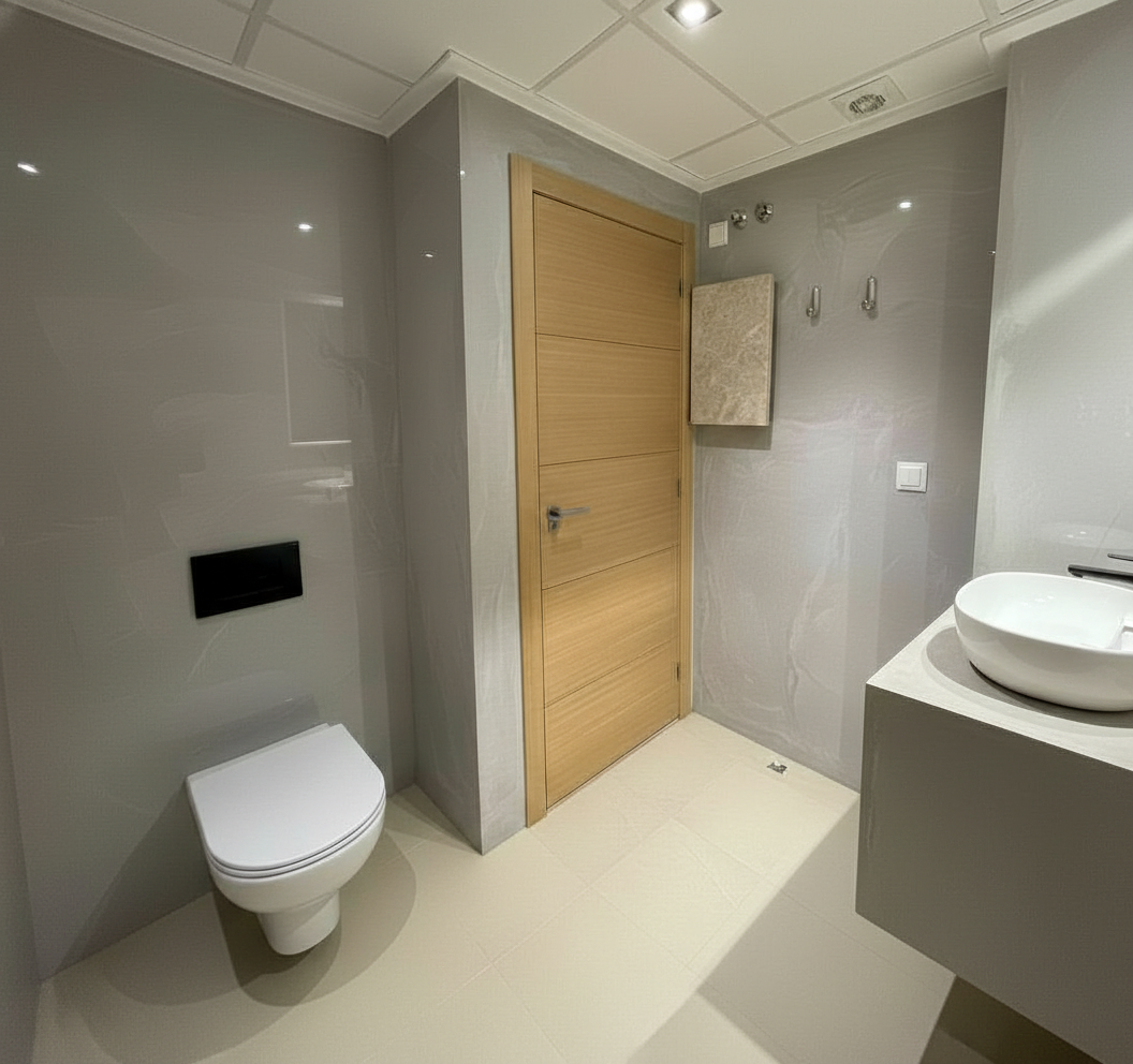 cambia el color del microcemento por el color topo de la imagen de referencia