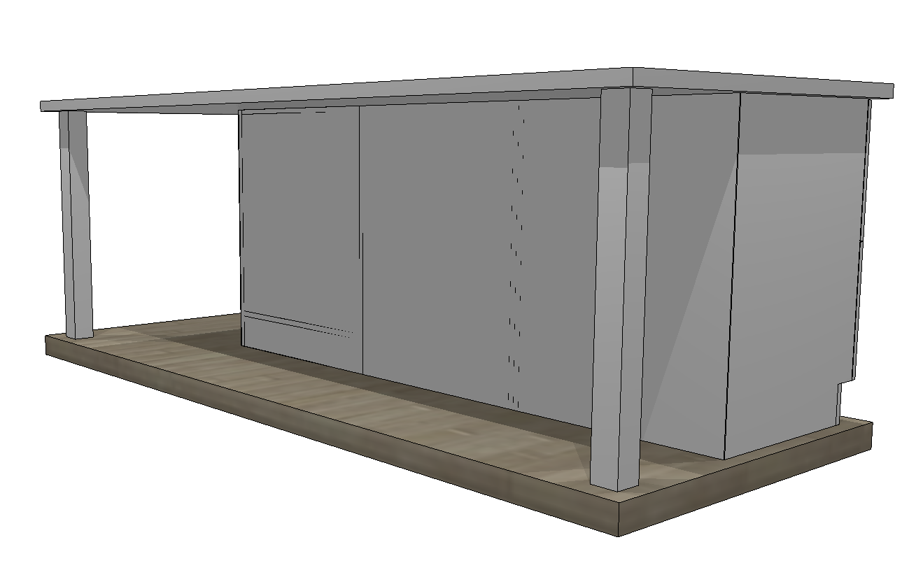this is and interior island the cabinets and countertop are decorator white do not render with a background there are door cabinet openings in this rendering there is a matching panel