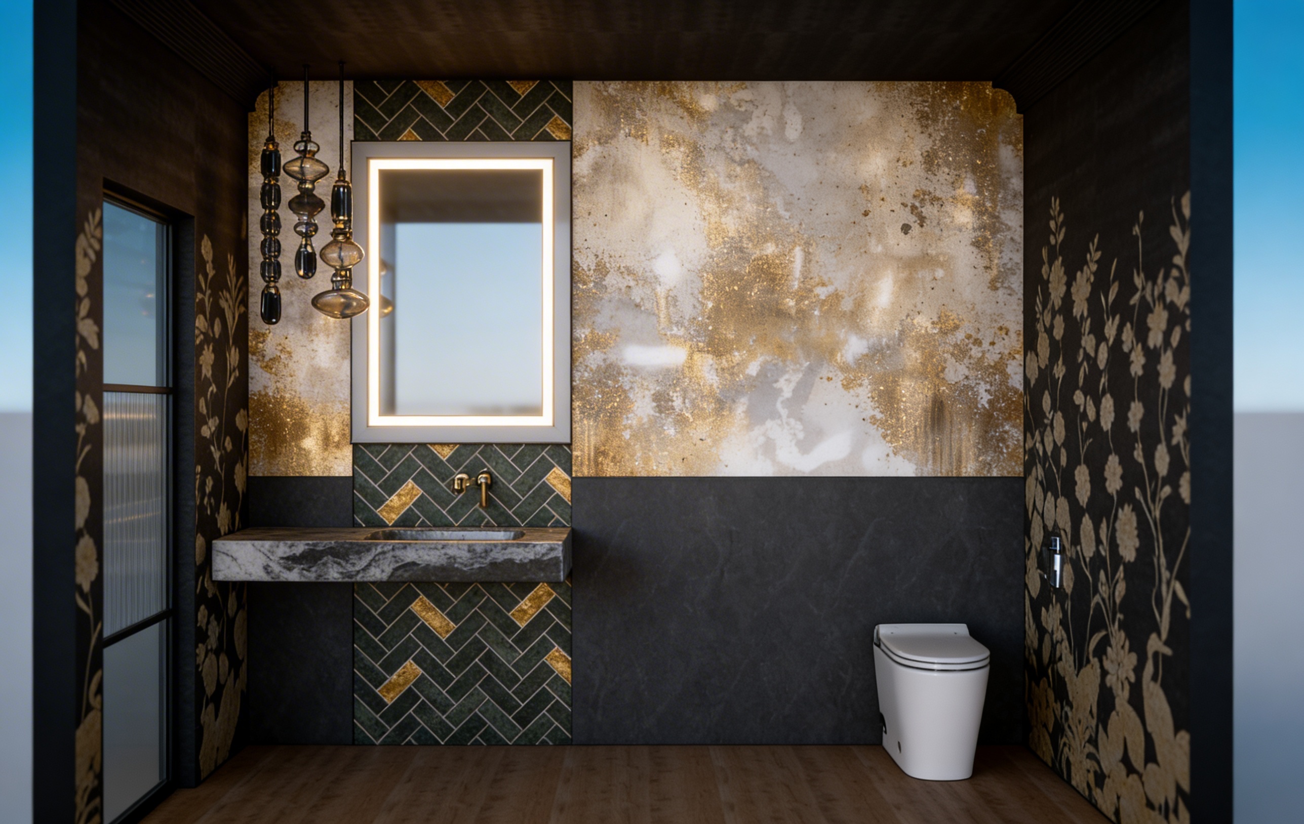 add natural lighting make look realistic add luxurious light fixtures and bedding add a large area rug under the bed add wall sconce above the bedside table add wall art and potted plants there is a far away ocean view out the windows add landscaping outside