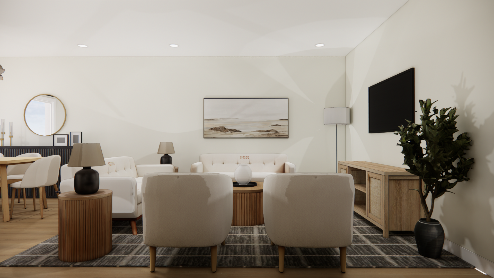 add natural light add soft glow to lampshades add eucalyptus to white vase add neutral throws add neutral pillows