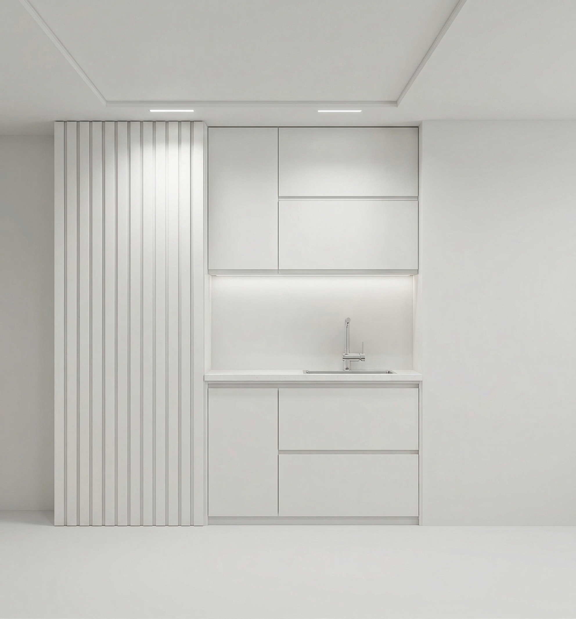 contemporary interior from the top modern farmhouse kitchen white cabinetry black pendant lights light oak wooden flooring minimalist design soft natural lighting clean lines black window frames marble countertop high end finishes realistic interior render architecture