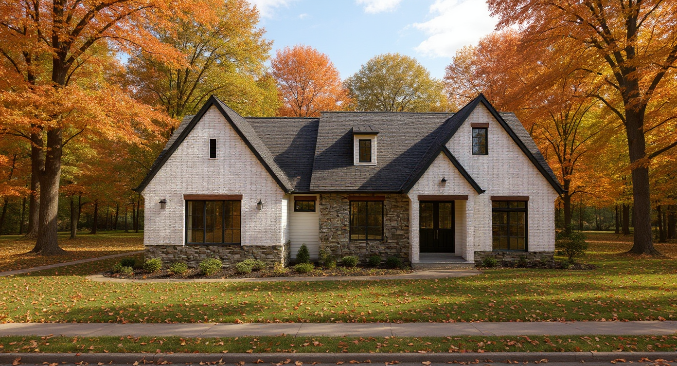 respektuj obr zek geometrii 3d modelu chci jen doladit vidzu l p idat vybaaven lidi auta ke e kytky atd vygeneruj textury om tka hladk sv tle b ov terasa s prkny m rn uber barevnosti u d eve n ch prvk pergoly atd ide ln dez n dub p rodn na nebi m rn oblaka zapracuj do modelu pozad viz referen n obr zek d m bude st t na tomto pozemku