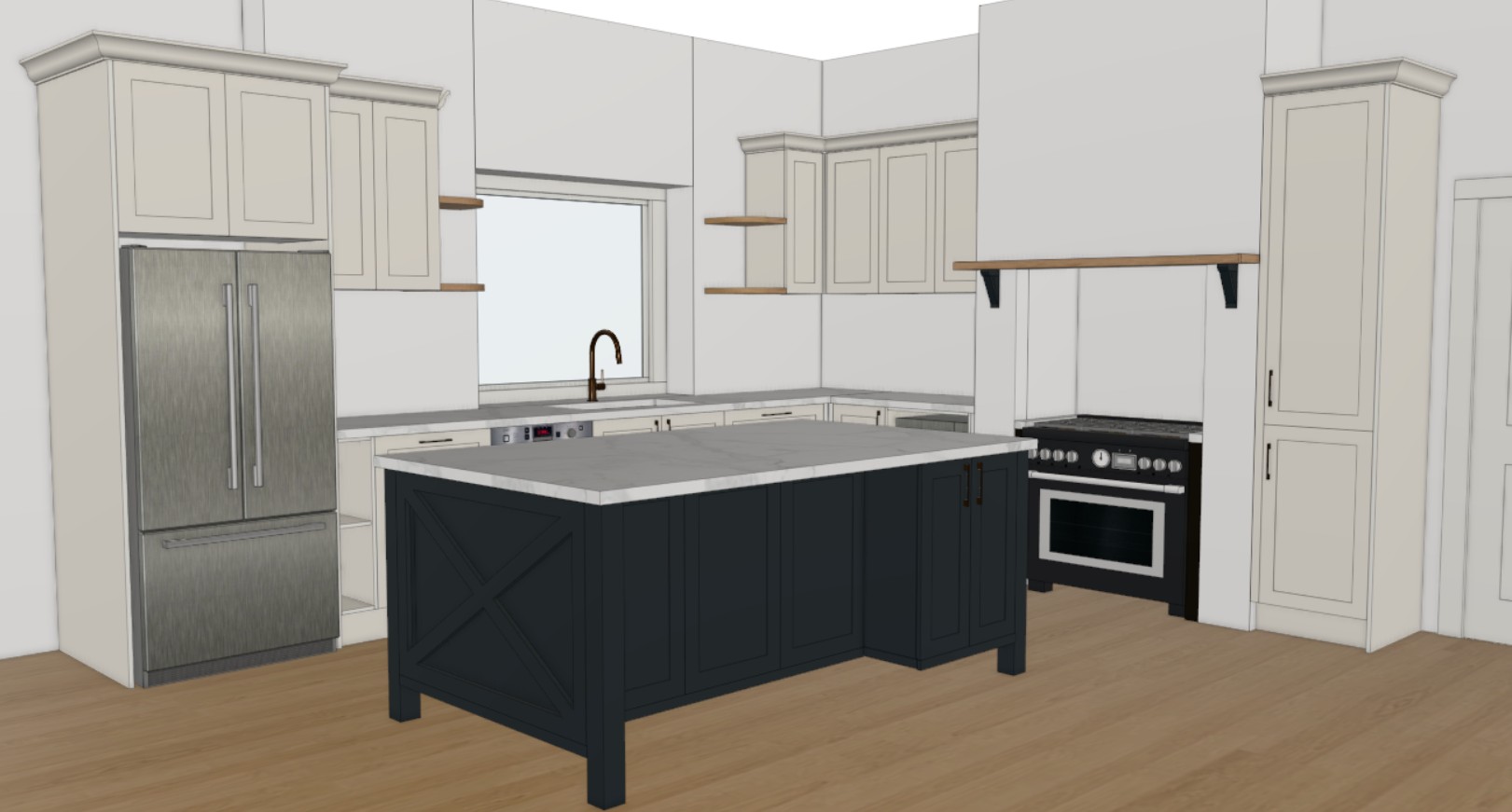 add kitchen decor natural light coming through the window and 2 people in the kitchen cooking together