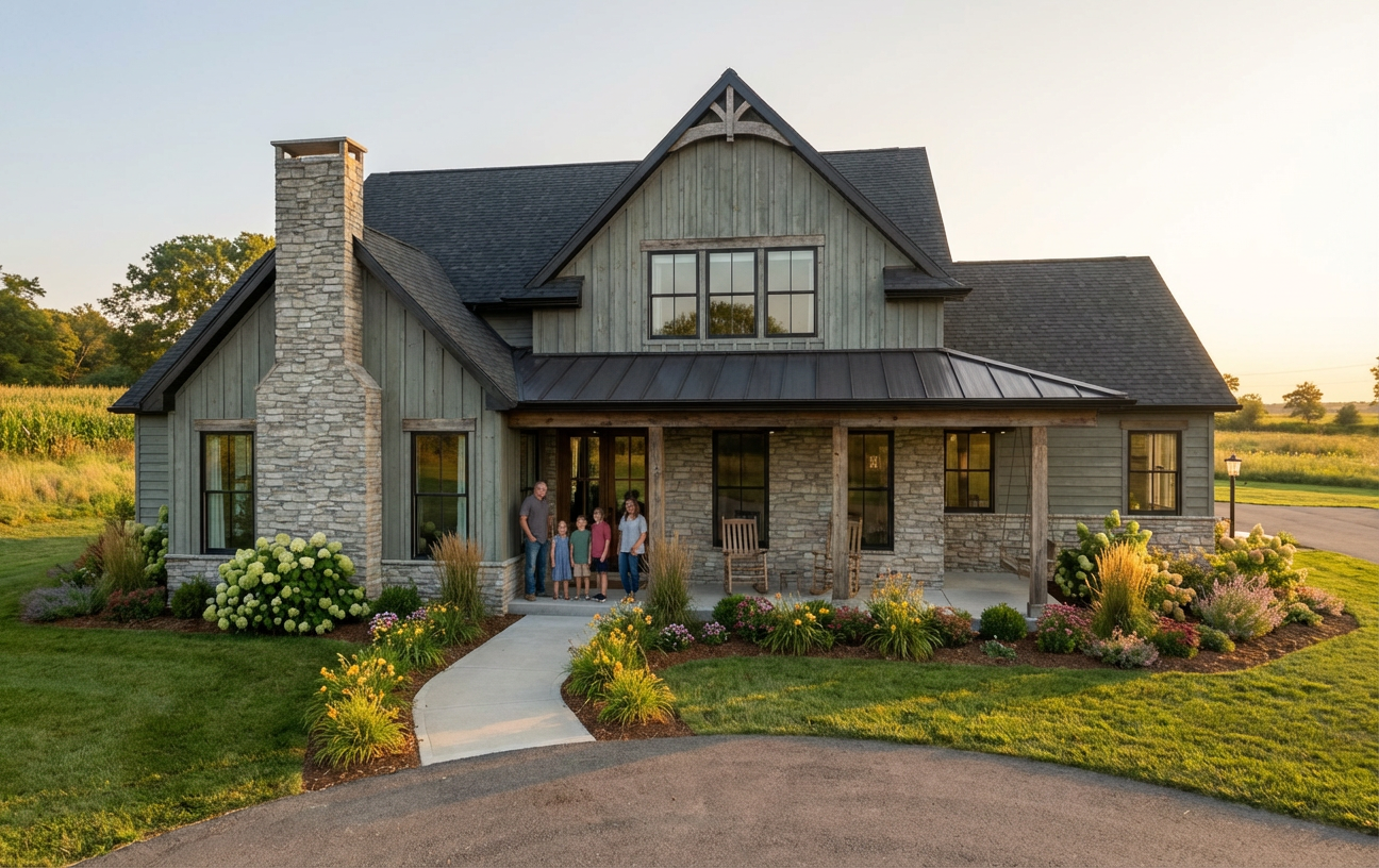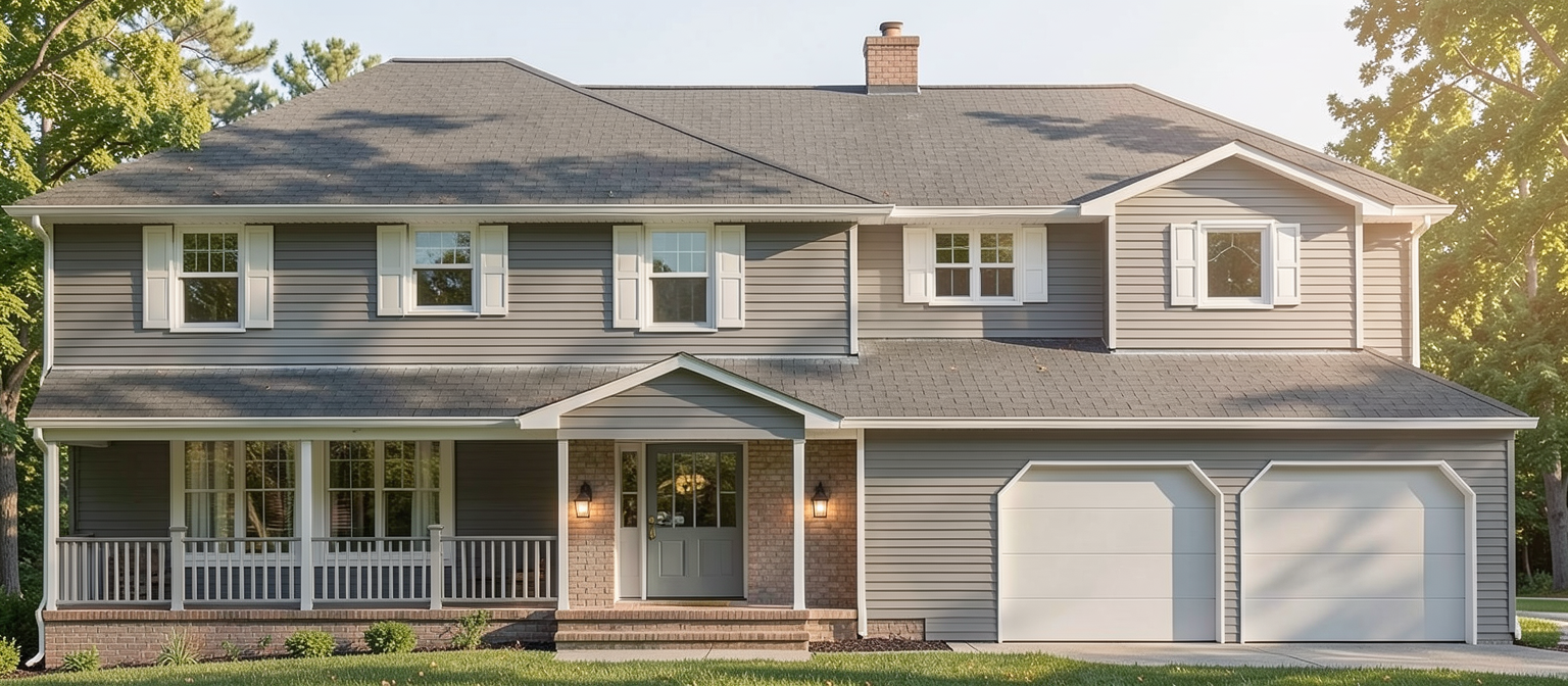 gray vinyl siding brick on 1st floor left facade