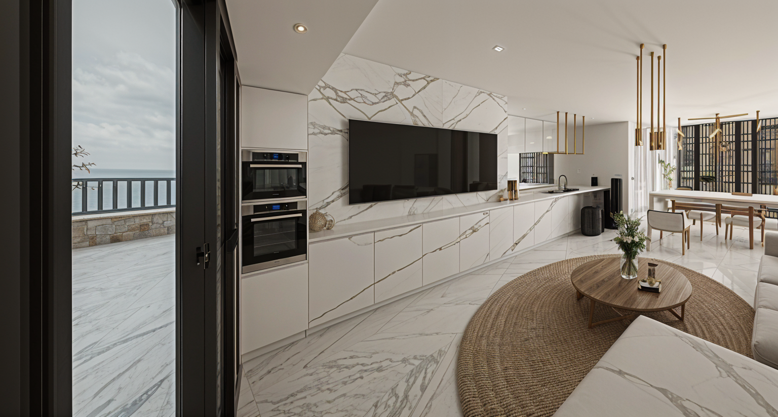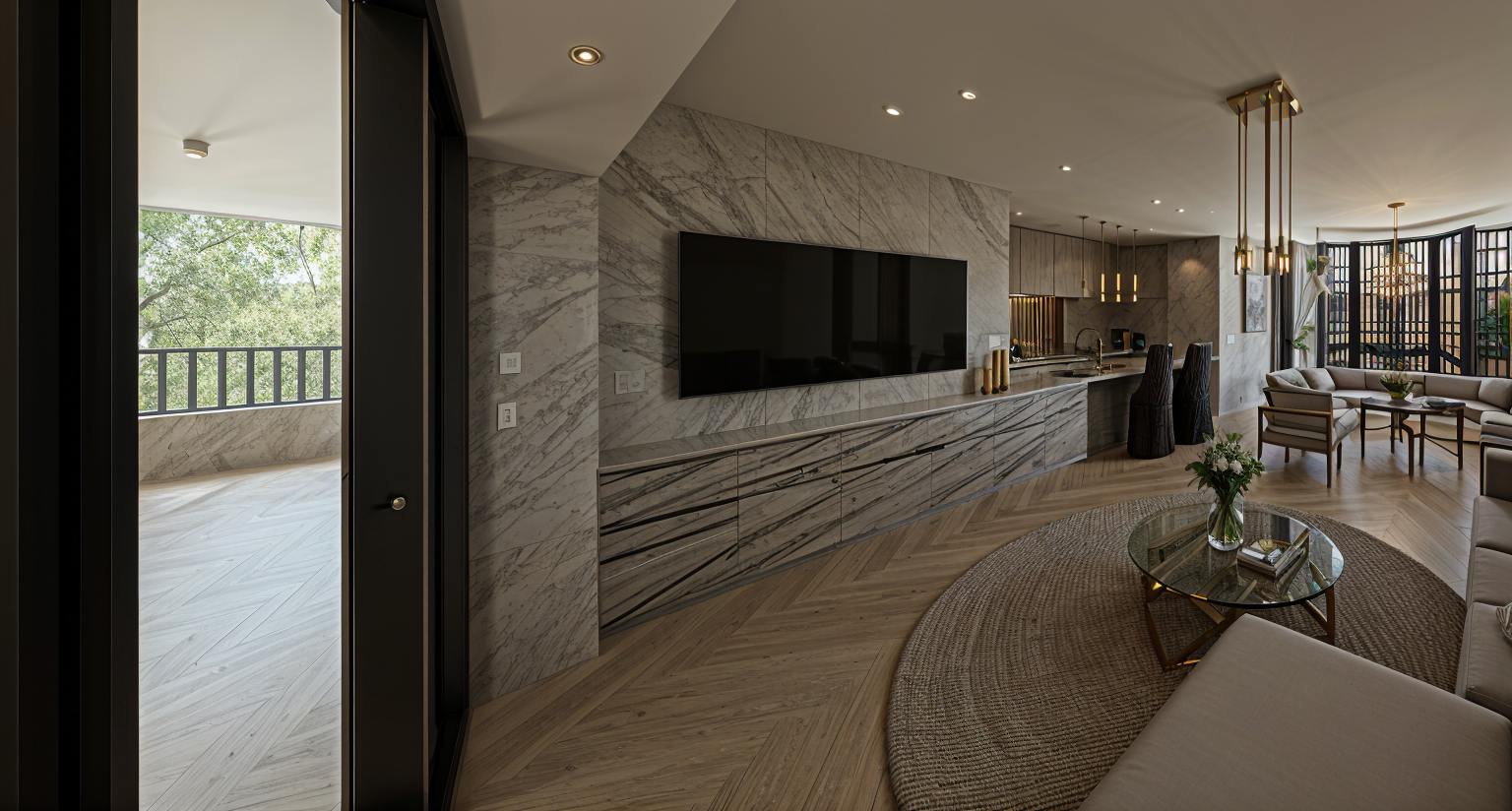 adapt this photo to the reference photo make it modern use beige white and wood add lights to the ceiling add leds too