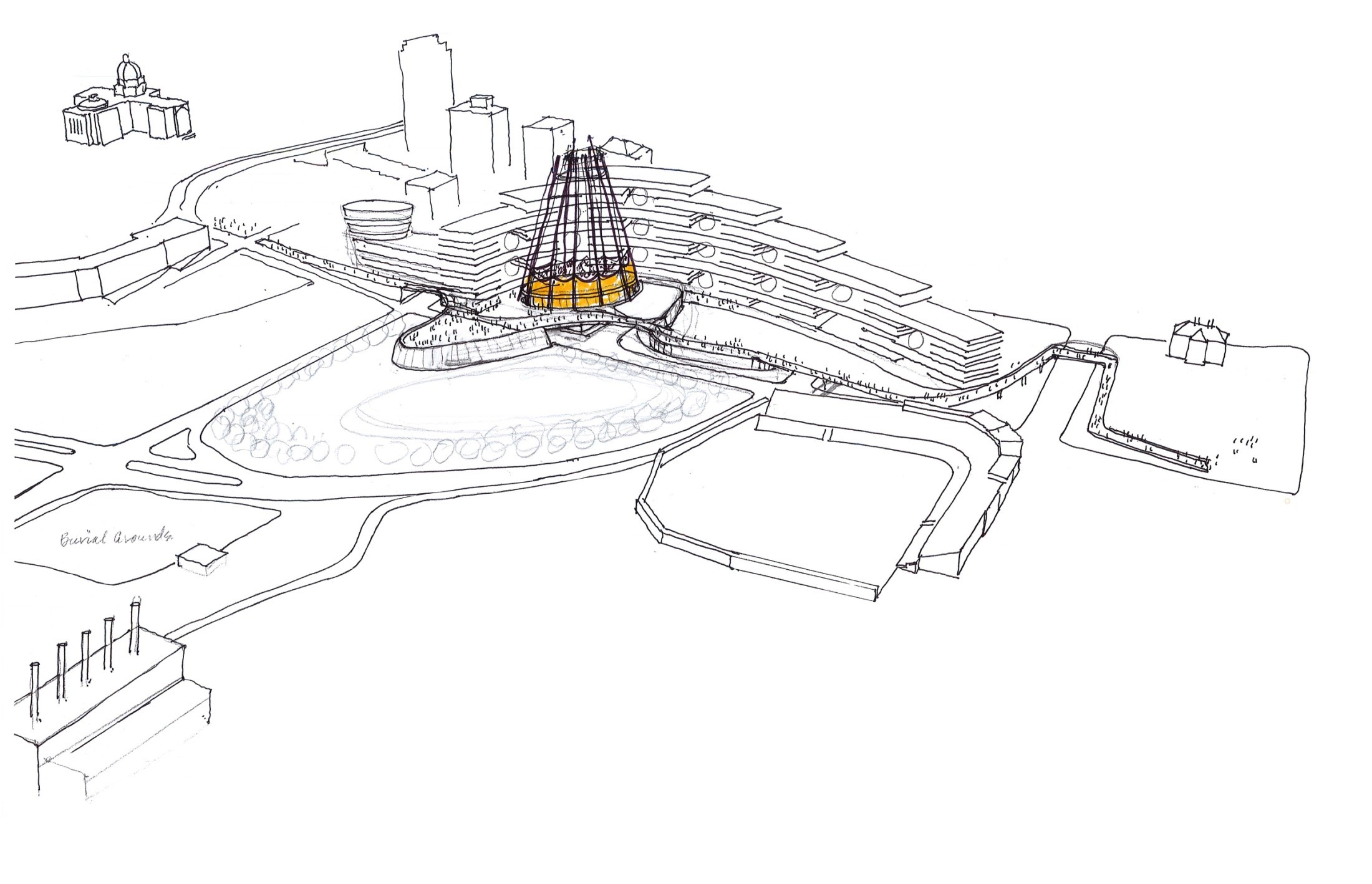 make sketch more abstract minimal muted vague and with little detail abstract white space around no water