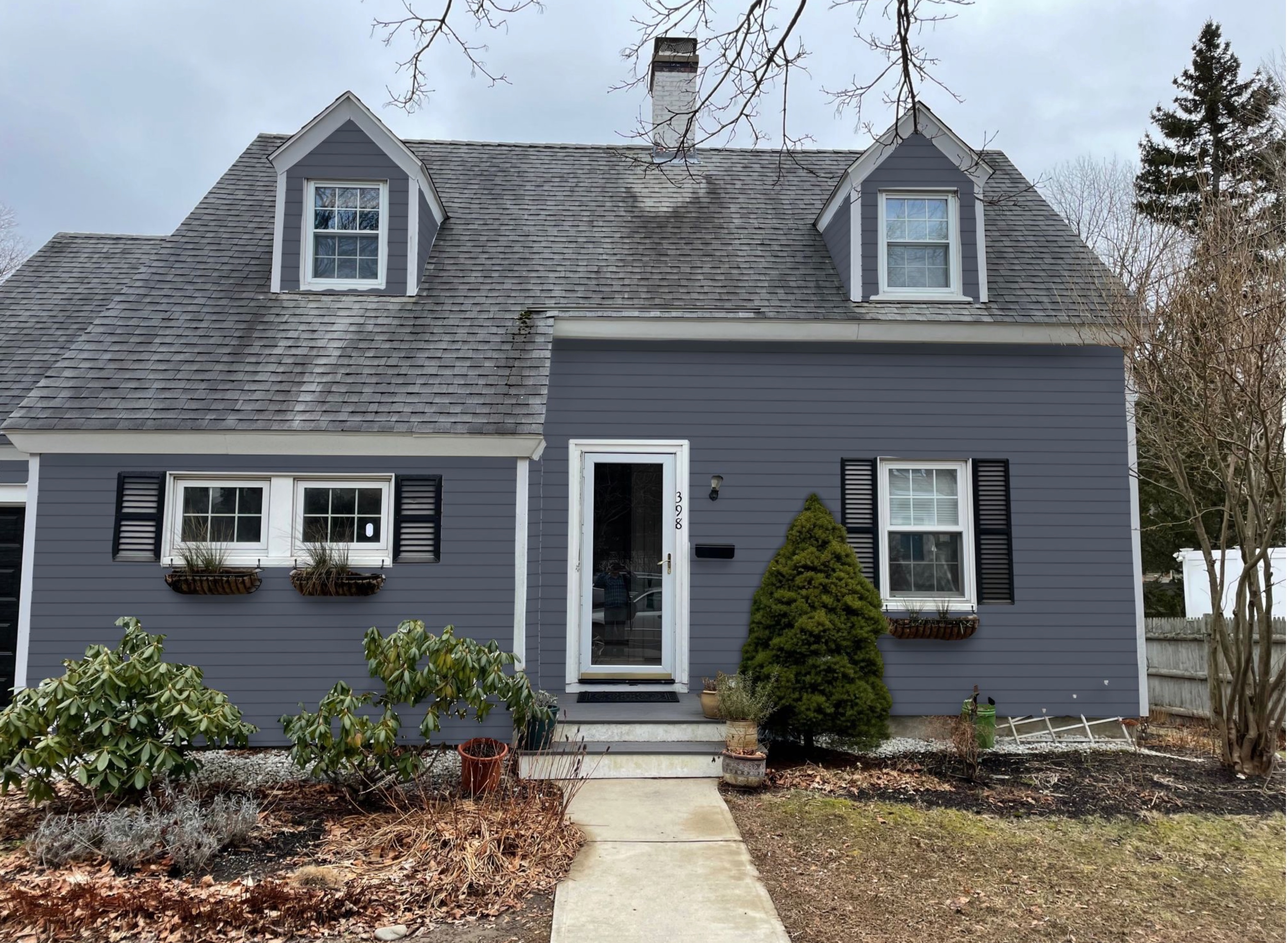remove shutters make chimney red bricks make white trim a warm white color make door natural mahogany color