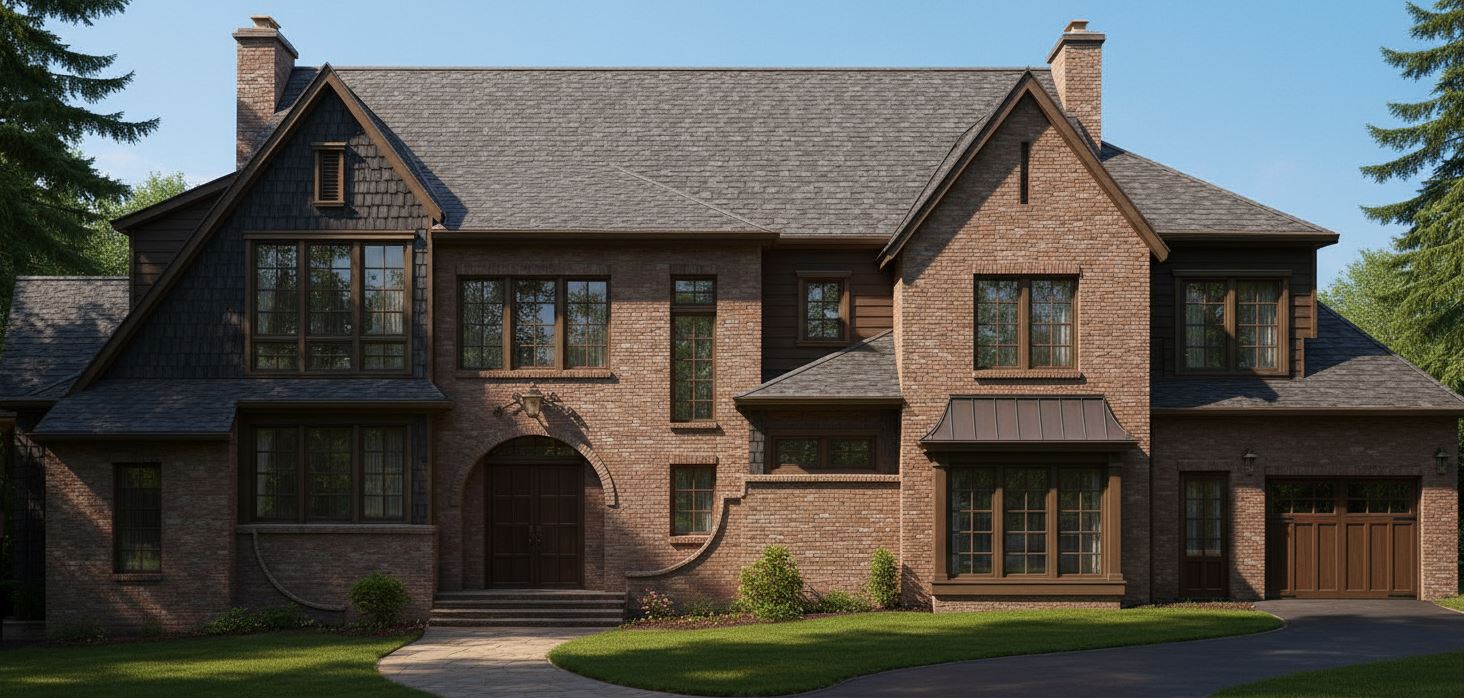 can you render this with black shingles garage door and trim painted sherwin williams 9543 brick painted sherwin williams 9565 siding and shakes painted sherwin williams 7015