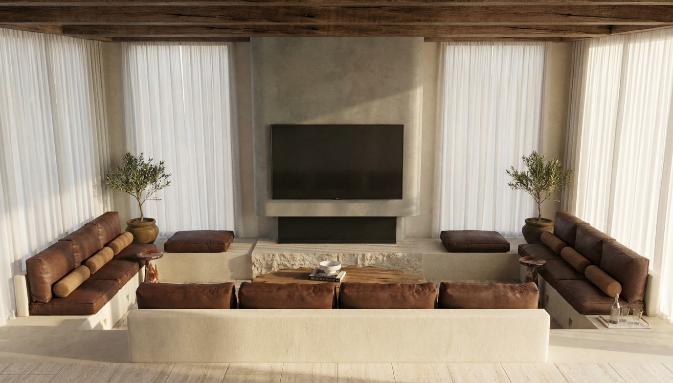 the bottom face of the fireplace is a split face travertine which returns to the front face of the plinth