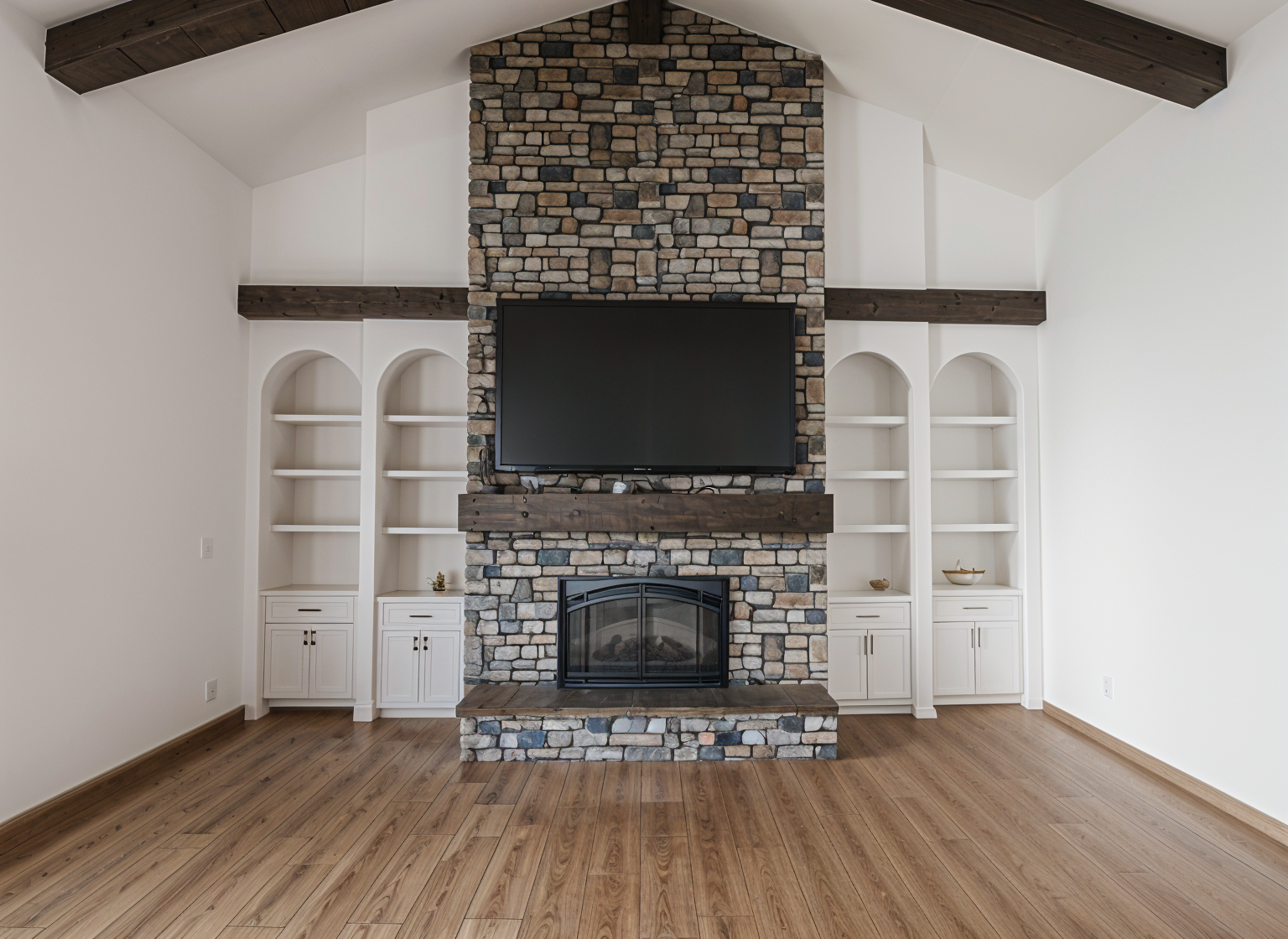 add bead board to the back wall around the fireplace and bookcase