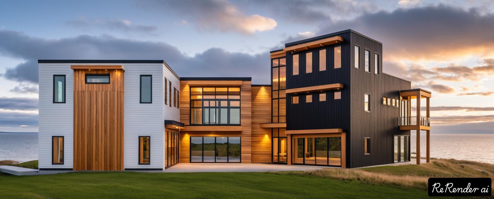 change the white horizontal siding to match the black vertical siding on the right side change the vertical cedar siding on the left bump out to the horizontal cedar siding shown on the center portion