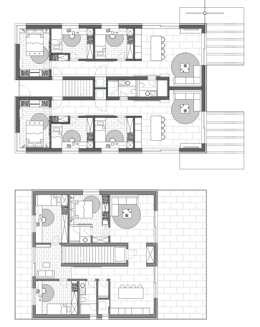 convert this floor plan into a realistic isometric 3d view of a full house show the space from an elevated angle with furniture walls and details visible image type hyper realistic isometric nothing can be changed in the floorplan a modern concrete bushveld lodge bronze aluminium sliding doors and in front of the living room and kitchen a polished concrete floor timber columns on the patio architectural render editorial style with a calm and refined atmosphere camera at eye level neutral lens 35 50mm no distortion main elements and a circular wall feature a dark grey fabric couch critical high fidelity flooring wood herringbone natural wood parquet in herringbone pattern the direction of the pattern must be perpendicular to the wall matte finish soft grain visible no excessive contrast or gloss wall textile finish continuous organic textile surface subtle even texture across the entire wall warm beige brown tone restrained and not overly saturated no visible seams or irregularities aligned with the design language soft neutral architectural interior reflection must feel natural and physically accurate spotlight integrated into the wall vulcano type not turned on fabrics must be refined and cohesive smooth textiles soft patterns no saturated colors no elements the palette couch and chairs dark grey fabric matte soft texture slightly volumetric no lighting soft indirect daylight diffused natural light entering from an unseen source carefully controlled reflections no harsh shadows no overexposure subtle gradients of light enhancing material textures color atmosphere neutral warm palette beige soft browns whites muted blues calm elegant editorial atmosphere avoid strong contrast and avoid color saturation style high end editorial interior photography minimal refined poetic inspired by architectural magazines and big art paintings abstract focus on materiality and texture quality ultra realistic high resolution physically accurate materials pbr soft global illumination no noise no artifacts restrictions do not introduce new elements do not exaggerate textures do not oversaturate colors avoid strong shadows or artificial lighting effects use the same furniture as shows on the plan do not change the orientation of the floorplan