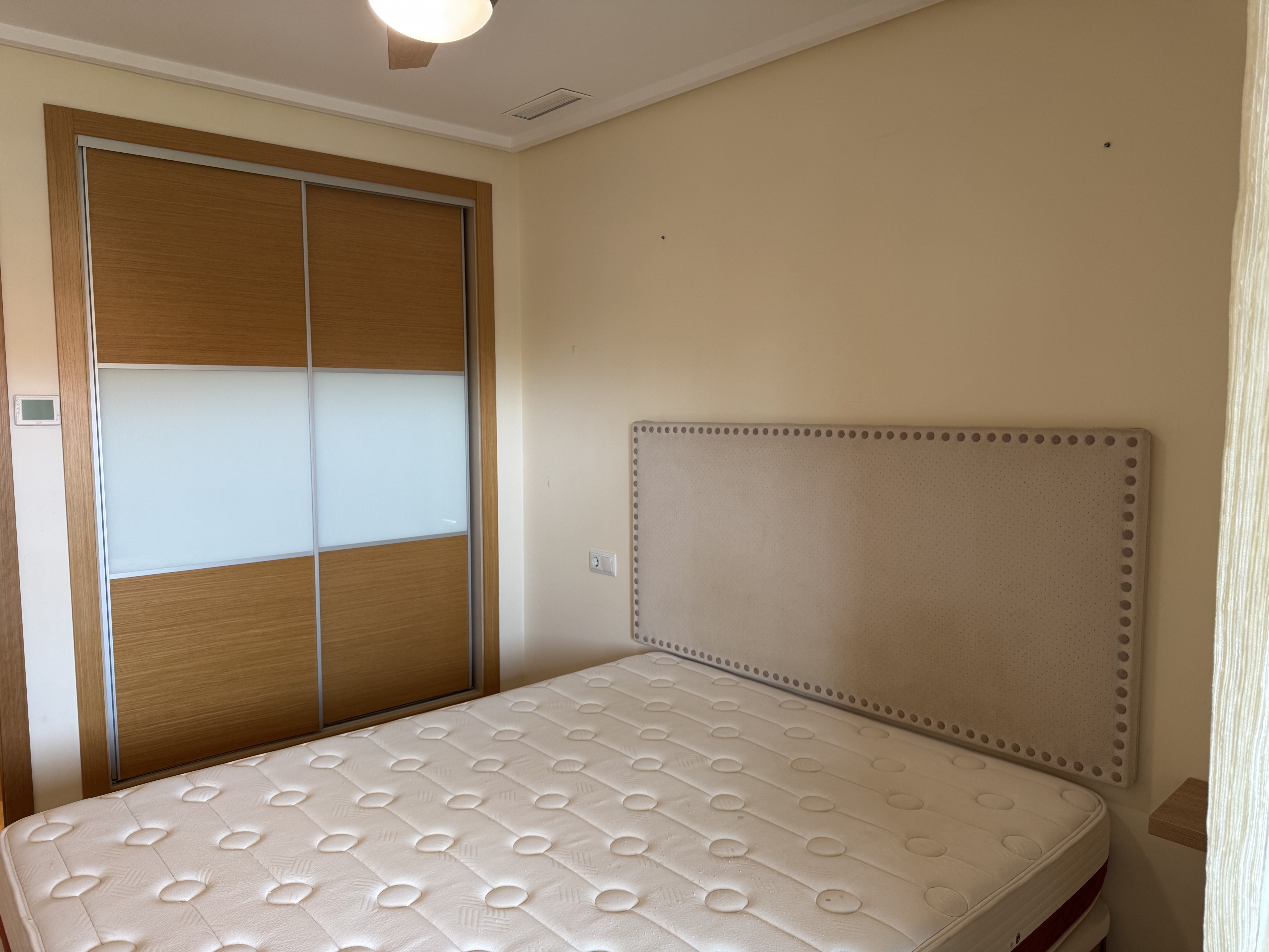 reviste las paredes correderas del armario tanto la parte de madera como la clara con un papel vin lico tipo lino reviste la pared donde esta el cabezal de la cama con un revestimiento como el de la imagen de referencia haciendo cuadrados y en ese color quita la cama actual y pon una vestida de 135 cm de ancho