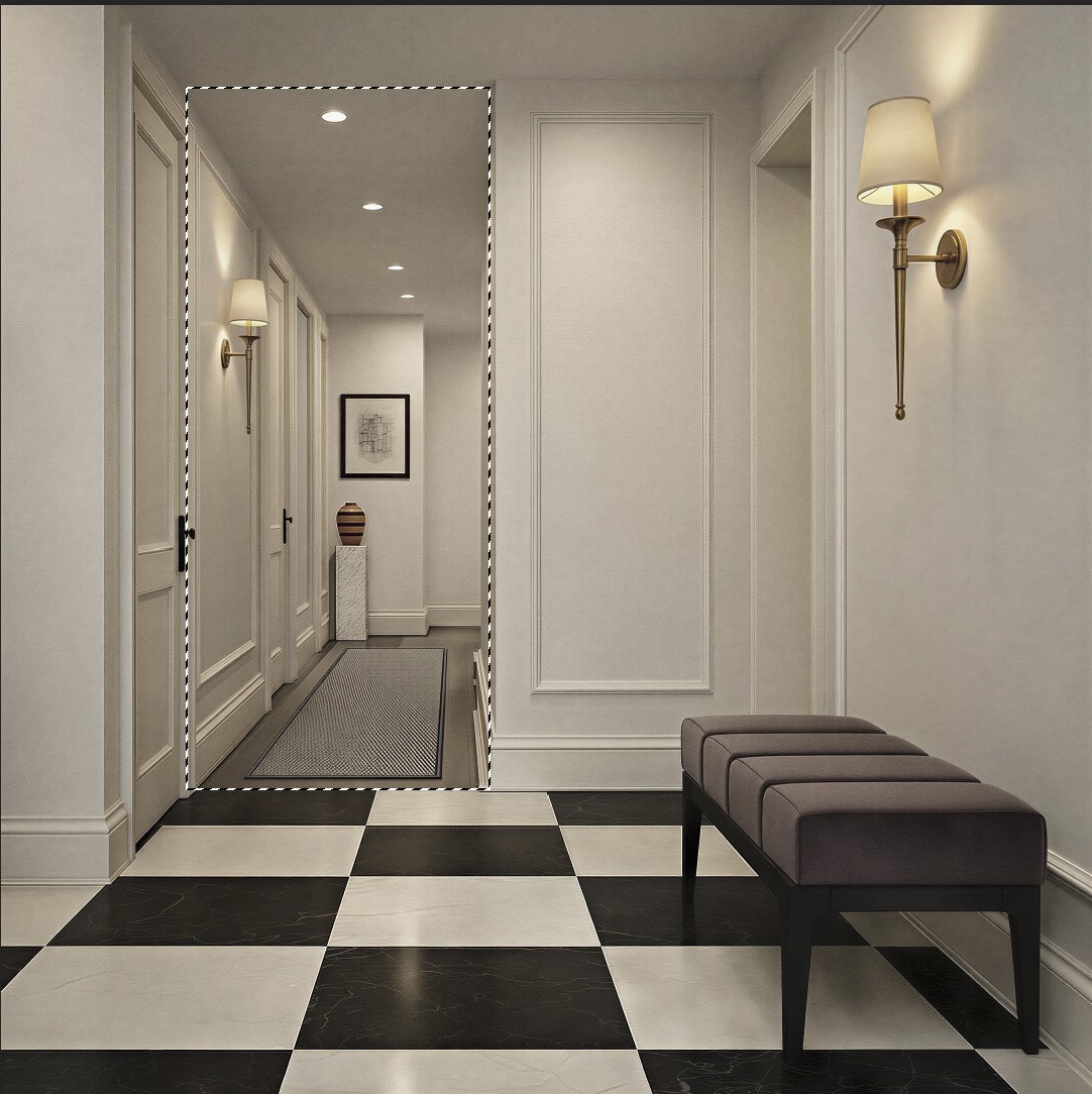 add a fluted glass panel with delicated black framing where i drew a rectangle in dash lines