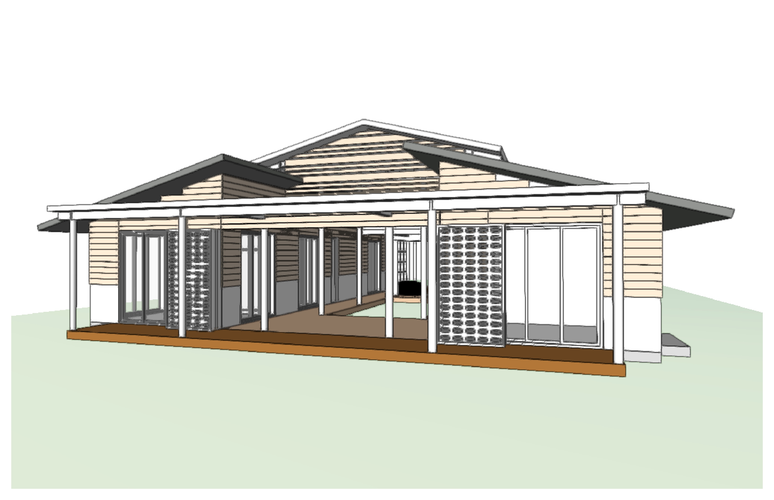 contemporary tropical minimalist house identical to the reference image preserving exact composition proportions camera angle perspective scenario and interior do not modify the architectural layout materials or interior design modify only the upper roof replace the glass roof with a transparent dampal polycarbonate roofing system with lightweight modular panels and subtle framing allowing diffused natural light into the interior while maintaining a clean and modern appearance all other elements remain unchanged including natural wood cladding exposed concrete base matte black volumes round black columns wooden deck and fa ade details surrounded by lush tropical vegetation with palm trees and dense greenery soft natural daylight warm tones realistic shadows calm atmosphere
