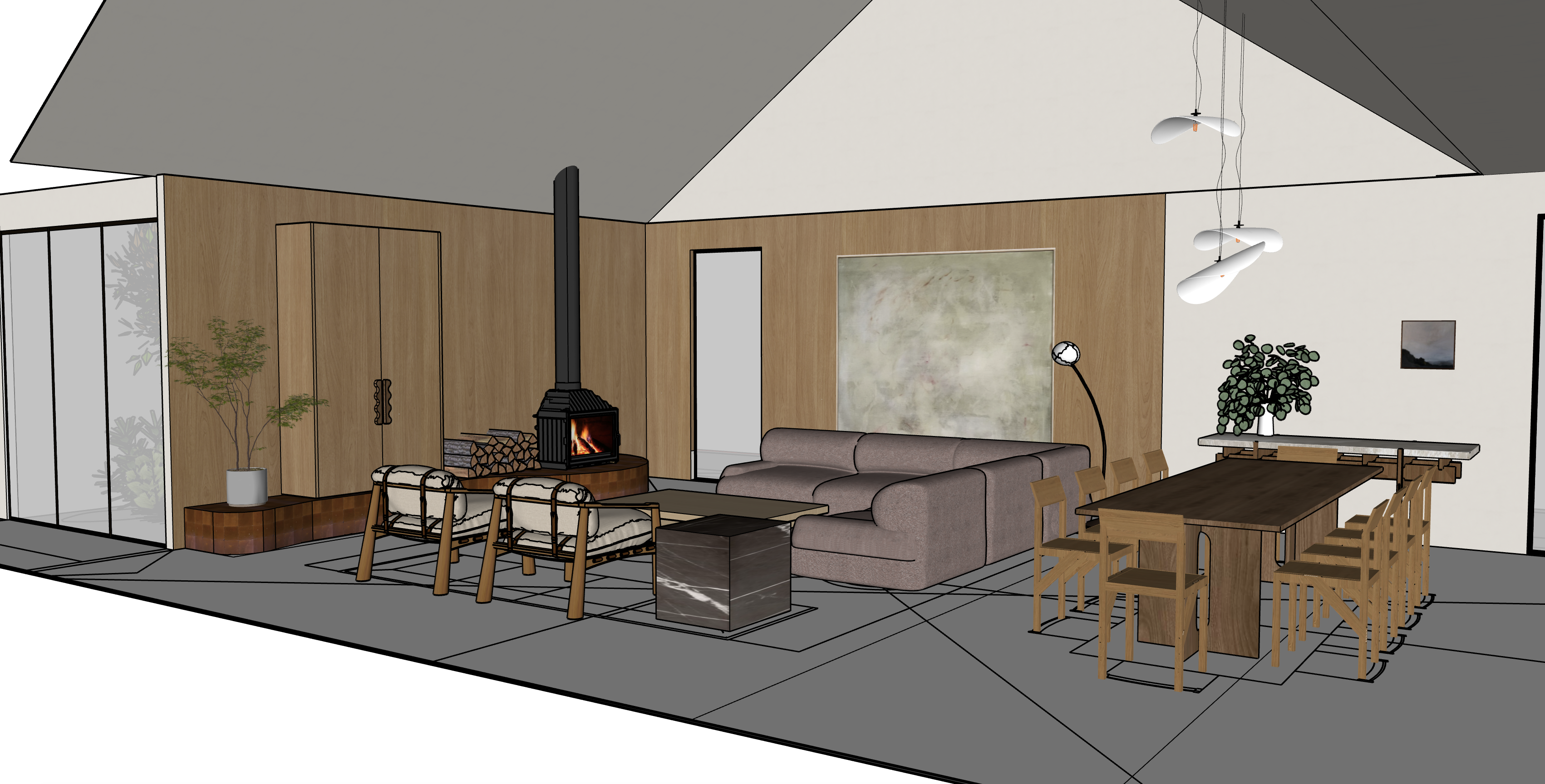 please show with timber rafters to pitched ceiling section