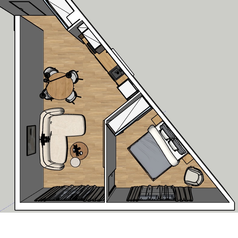 photorealistic modern japandi interior natural oak and cashmere grey finishes it is very important to preserve the black handles on the kitchen cabinetry the cabinet doors are cashmere grey and only the worktop and backsplash are made of natural oak warm neutral palette beige greige and soft wood tones elegant minimal styling soft daylight diffused warm lighting calm atmosphere realistic interior photography eye level camera wide angle shot highly detailed textures no distortion no clutter no people please keep all the furniture exactly as shown in the photo and do not change the chairs in the upper left corner there is a hallway not balcony doors