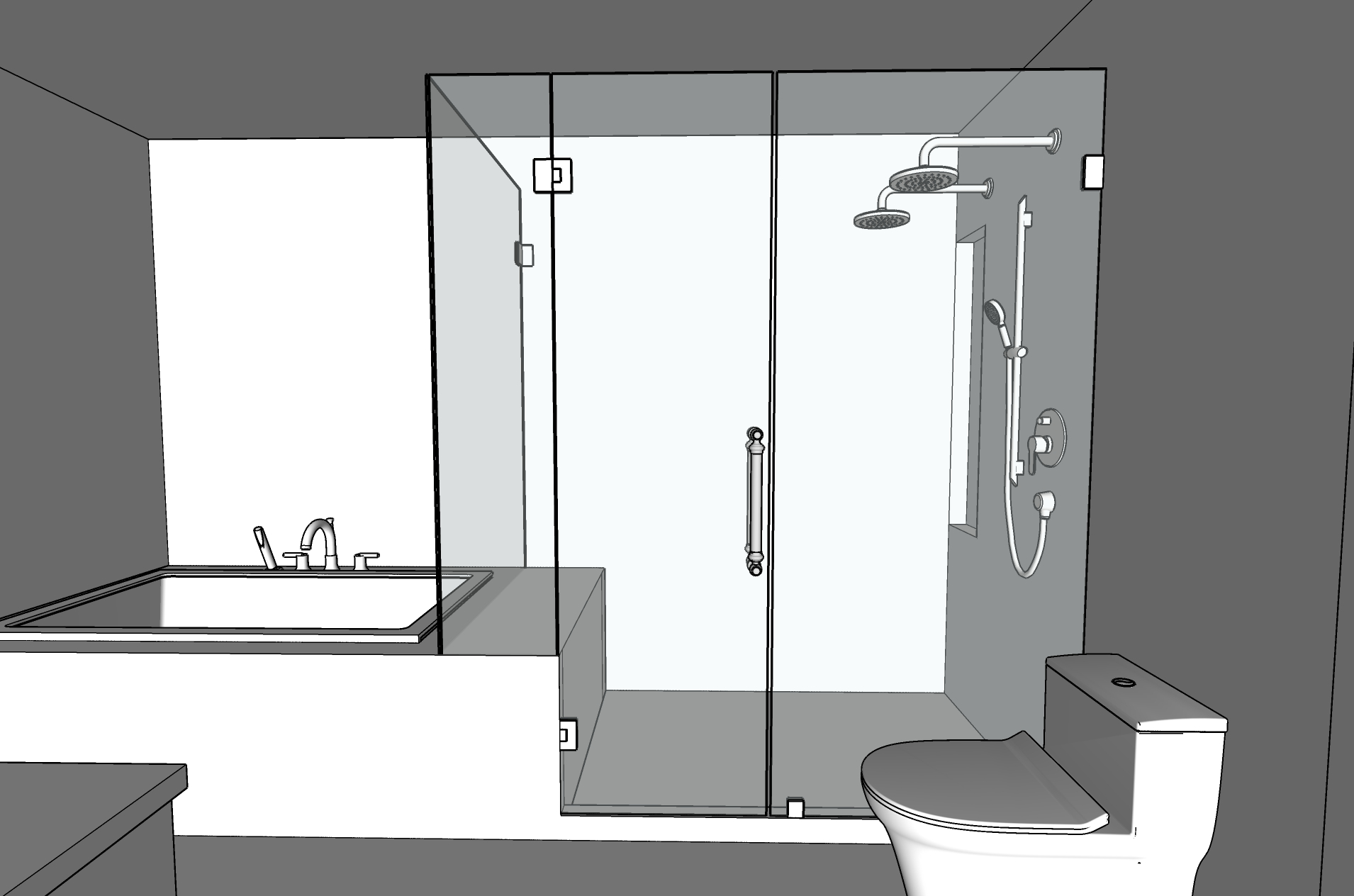 strict mode geometry lock only material and lighting transfer allowed use the provided sketchup model as the base geometry and composition do not modify layout proportions camera angle object placement or architecture in any way keep all elements exactly as modeled apply the following interior design style and materials walls wet areas main walls light warm off white color vertical narrow rectangular tiles fine ribbed fluted texture soft subtle relief not high contrast floor large format rectangular tiles approx 12x24 inches light warm grey or beige tone slightly glossy semi polished finish visible but thin grout lines clean grid layout bathtub matte white smooth minimal freestanding look glass partition clear glass minimal hardware fixtures shower faucet handles dark bronze or near black matte finish overall style minimalist calm spa like bathroom neutral palette white beige warm grey no clutter no decoration added lighting soft natural daylight diffused even lighting subtle shadows slight reflections on floor controlled not mirror like constraints no redesign no added objects no removed elements no change to geometry layout or proportions do not reinterpret or restyle layout only apply materials colors and lighting output photorealistic render preserve original framing and perspective exactly