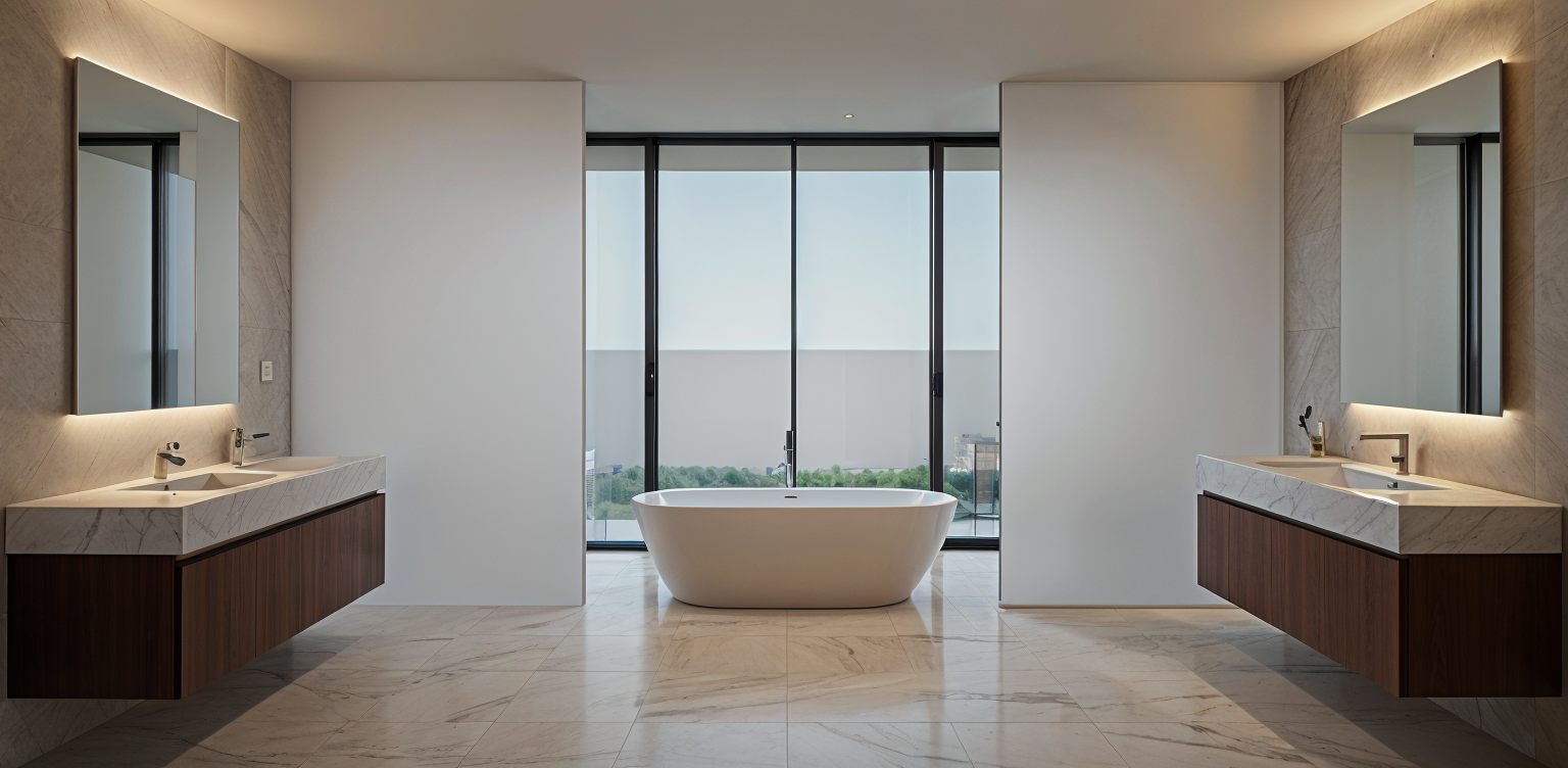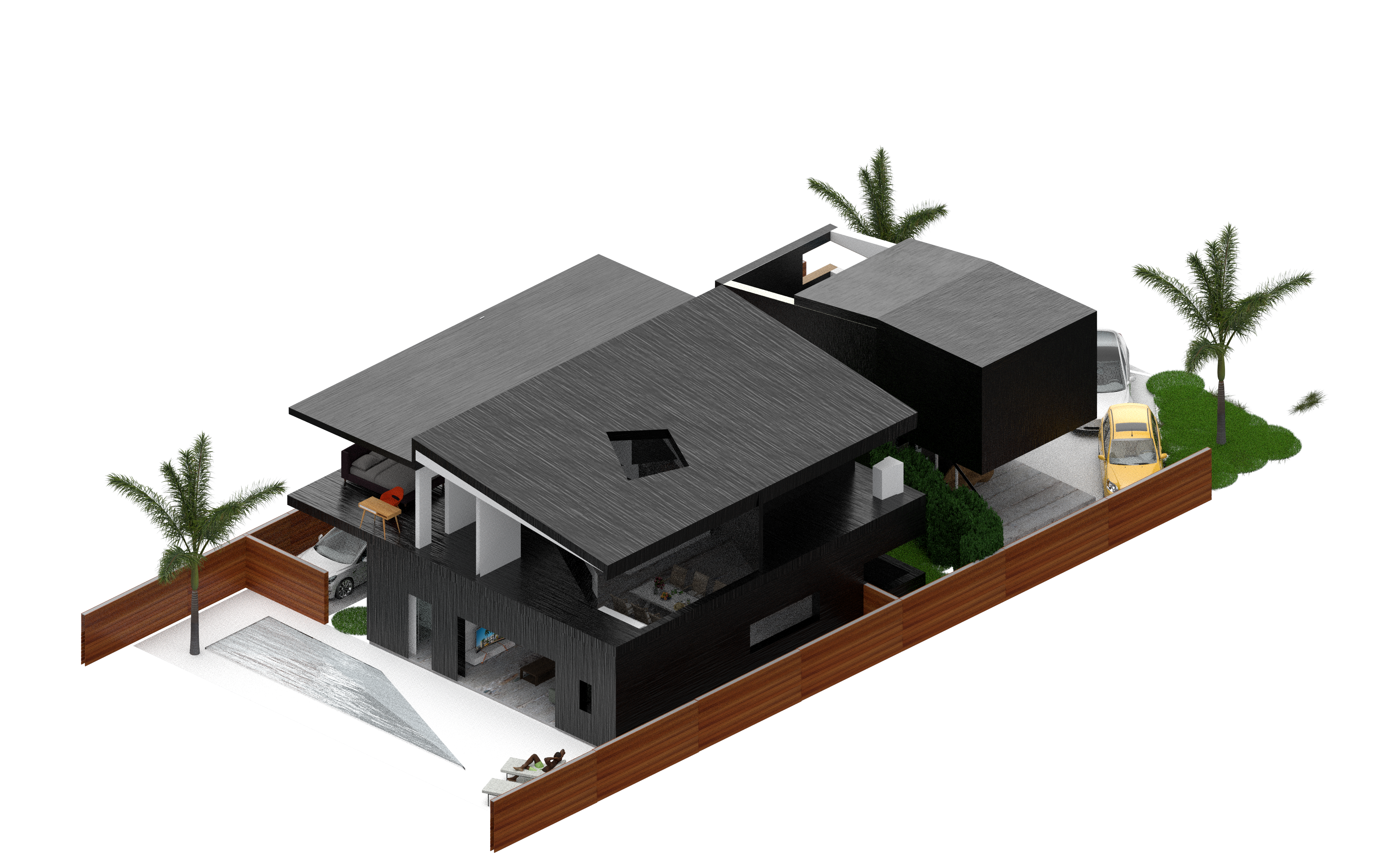 please don t change anything but make the atmosphere as follows exterior shot apply soft daylight with slight haze desaturated earthy tones and a cinematic mood emphasize minimalist composition muted colors and flat entourage silhouettes that blend graphically into the scene reduce hyper real reflections and glossiness adding subtle film grain for a photographic feel final image should feel like a conceptual architectural visualization calm atmospheric and editorial