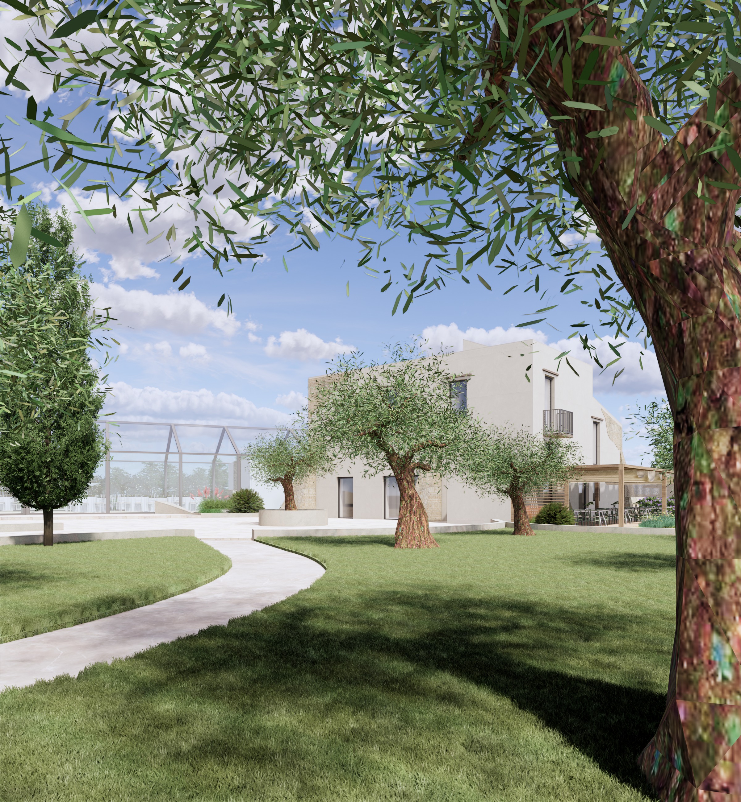 migliora il render in particolare il sentiero sterrato tra gli ulivi e il prato