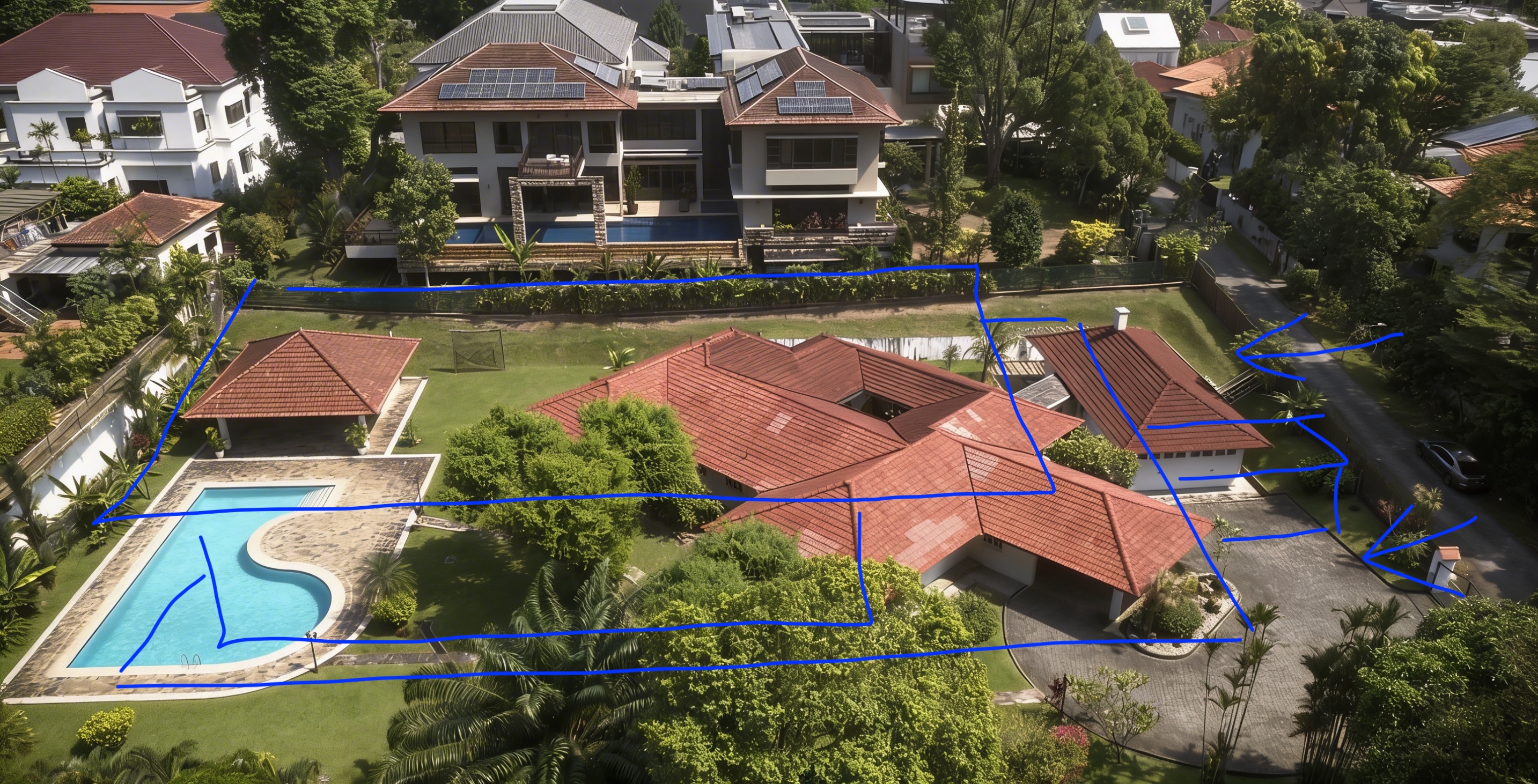 redevelop the land into a modern ultra luxurious house according to the sketch