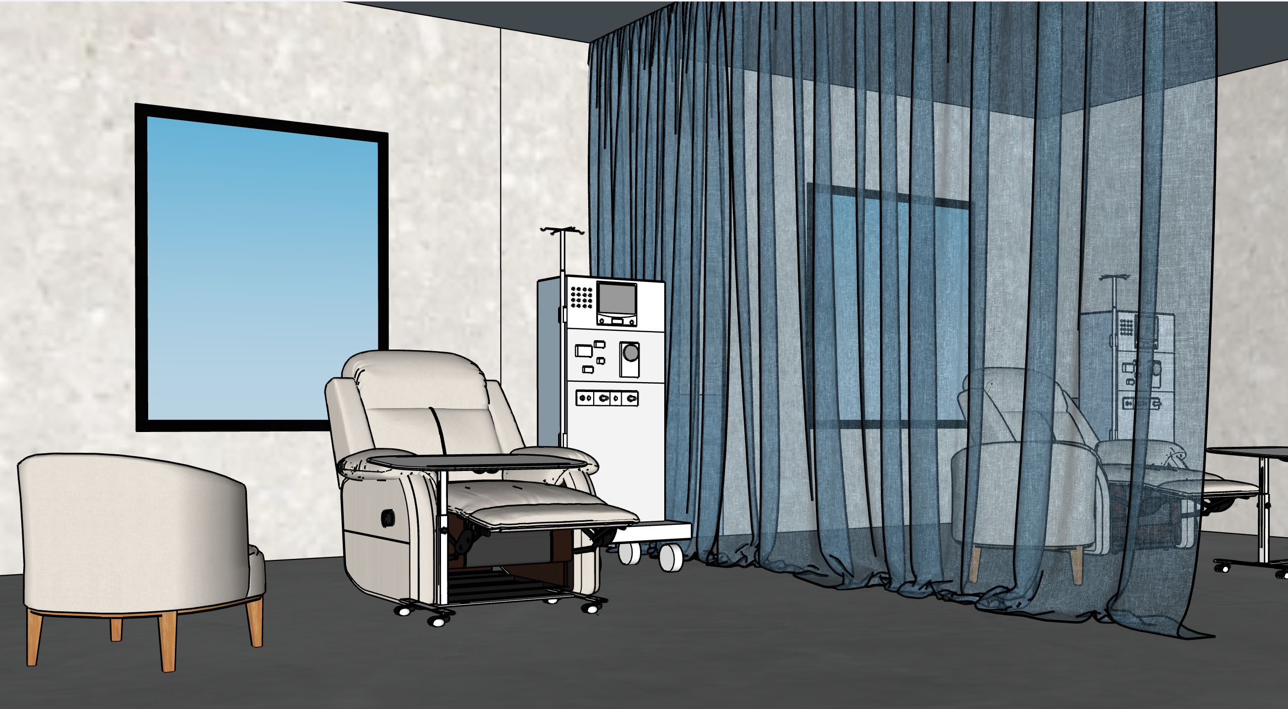 make it look like a dialysis pod add nurse and patient laying down in recliner