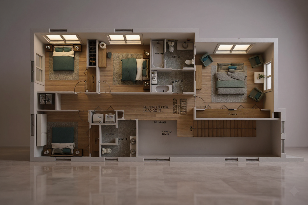 create a stunning 3d rendering of a modern semi underground parking area with sleek black steel carport structures the setting features lush green trees and shrubs creating a vibrant and natural atmosphere the retaining walls and stairs are made of clean white concrete contrasting beautifully against the greenery soft sunlight filters through the trees casting gentle shadows on the smooth light gray ground enhance the scene with a calm upscale suburban ambiance using rich greens for the foliage pure white for the walls and a mix of silver and black for the parked cars