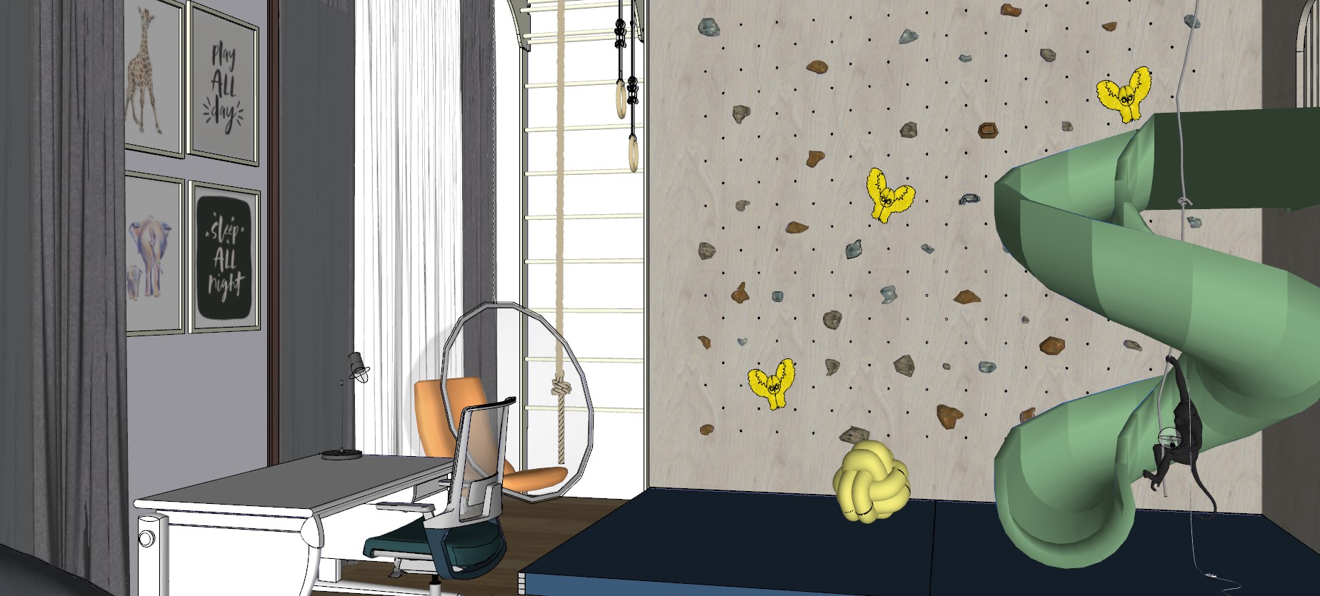 ad ceiling light at same style ad little boy also monkey is holding the light bulb everything is gentle colors soft and warm