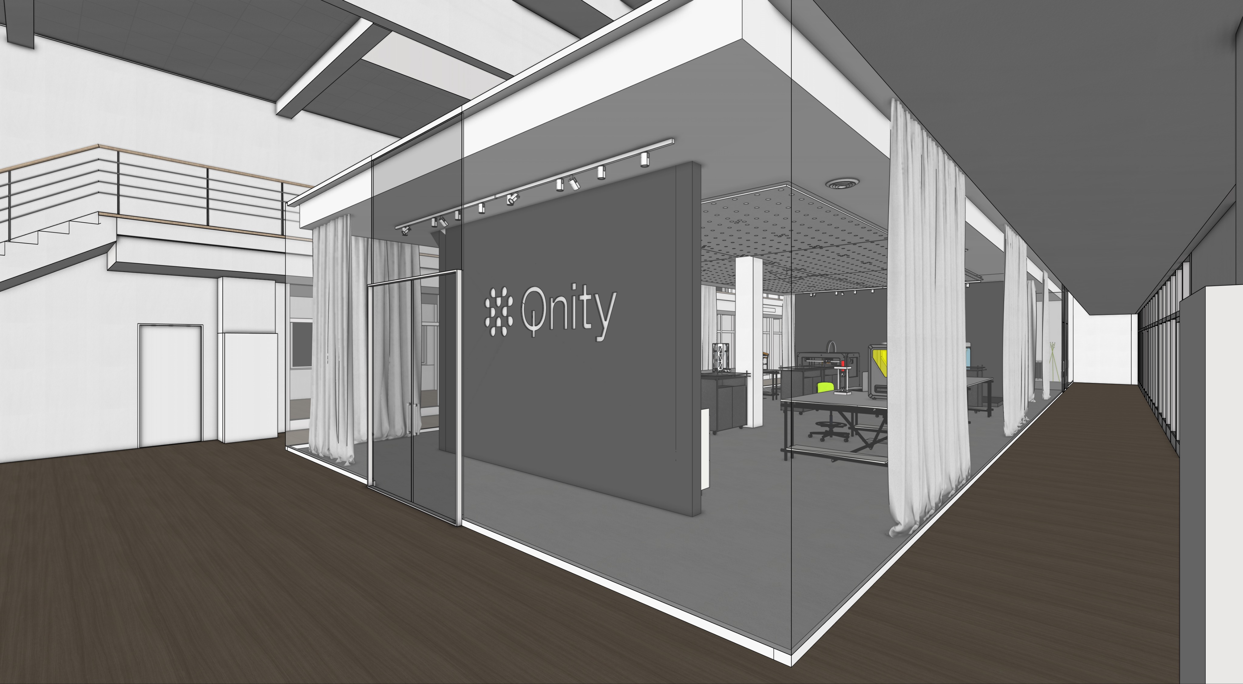 photorealistic visualizations of office spaces transparent glass walls or natural white plaster interiors with predominantly white color