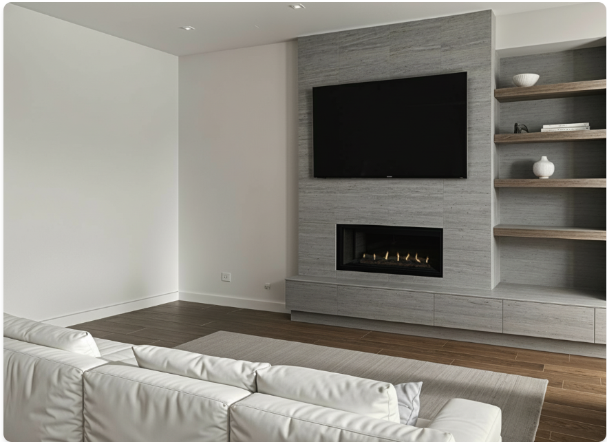 add walnut slats to the left wall