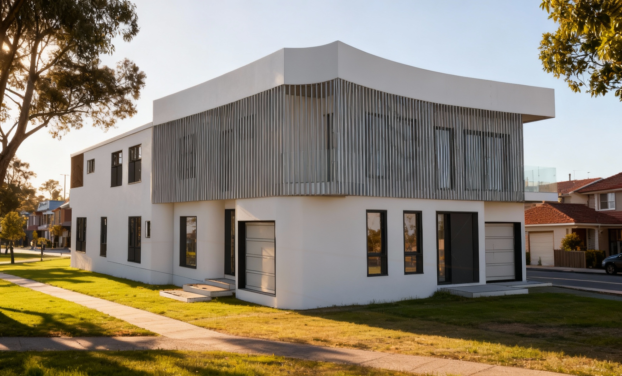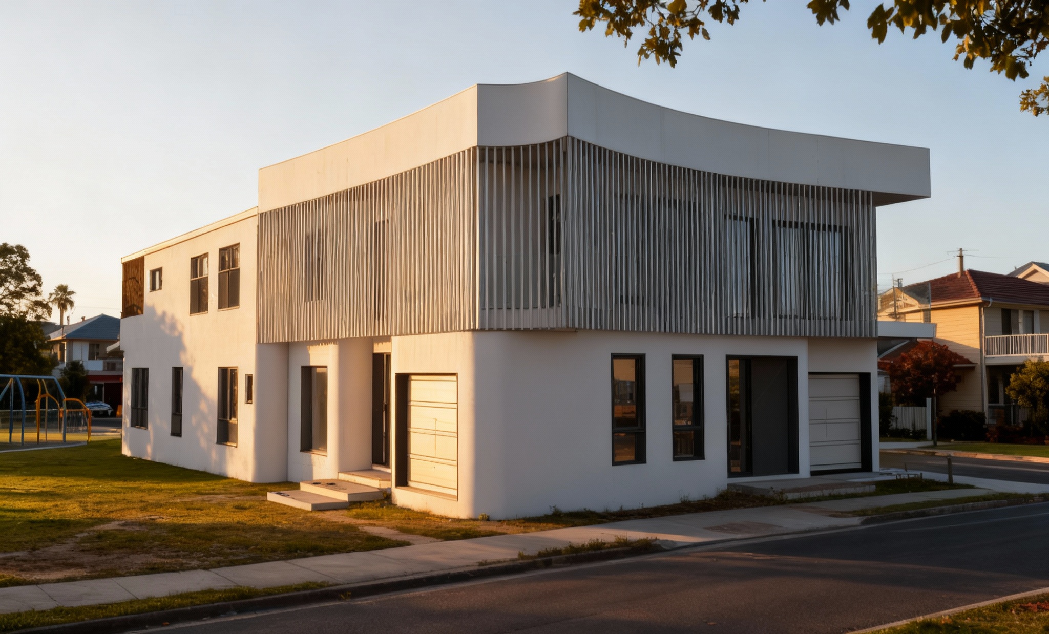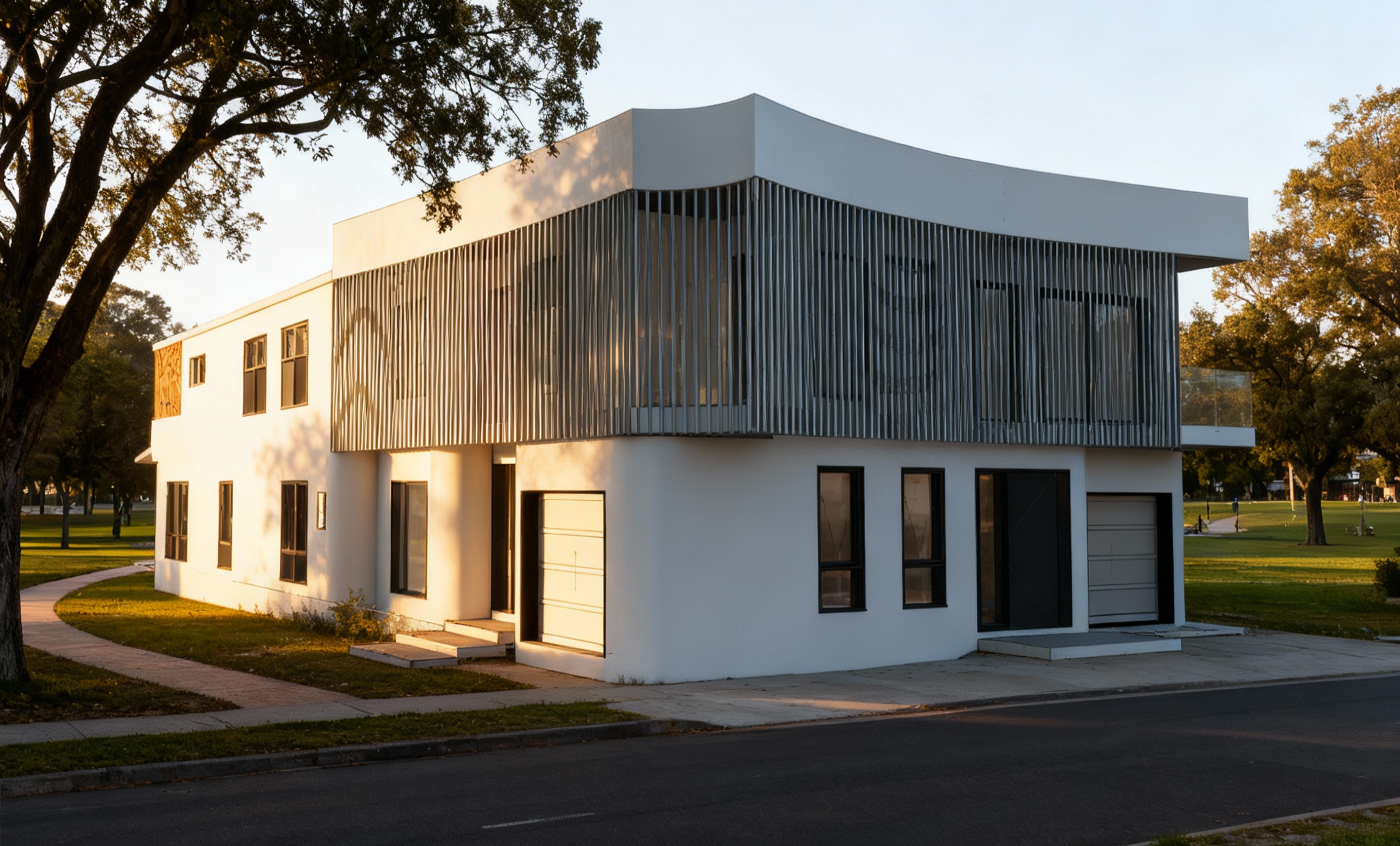 a photorealistic high resolution interior rendering of a modern farmhouse kitchen designed for architectural showcase retain all existing details white shaker cabinetry light gray quartz countertops white window panes pendant lighting over a large central island farmhouse sink and natural wood flooring emphasize realistic material textures subtle reflections on the countertops fine wood grain on the floors and soft matte paint finishes on cabinetry natural daylight streams through the windows creating balanced illumination with gentle highlights and shadows the exterior view shows bright sunlight filtering through branches and a lush backdrop of green trees adding depth and realism while maintaining focus on the kitchen s clean timeless design and craftsmanship
