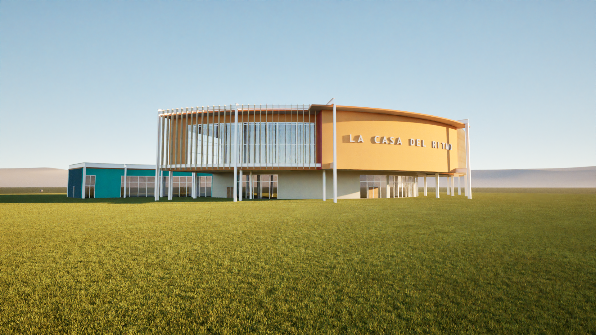 make it look like its in miami and add an interactive outdoor space in front of the building