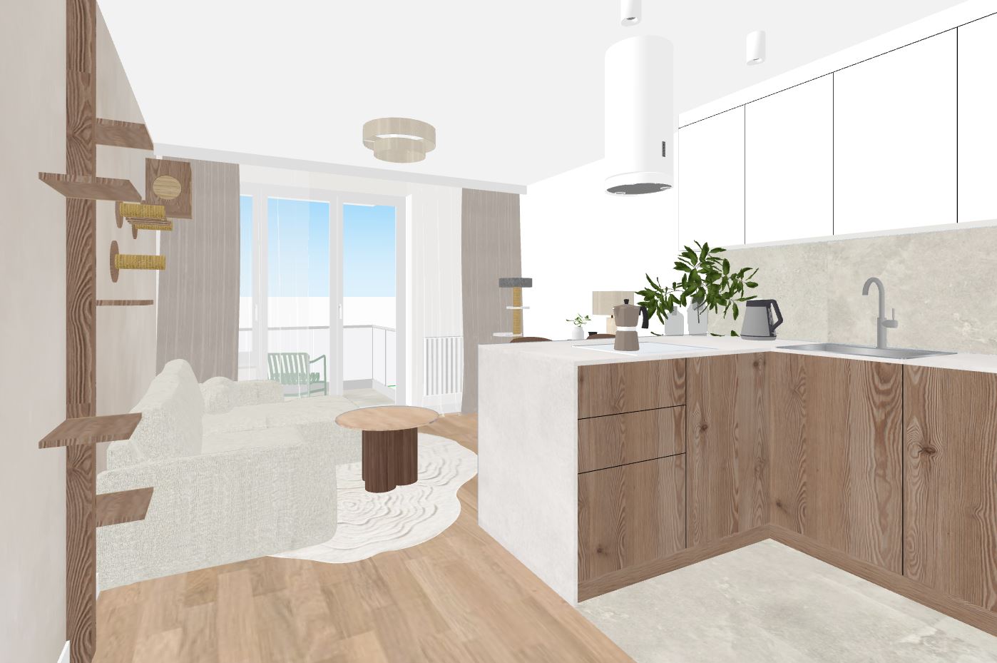 do not change anything walls are cream colour ceiling is white light wood on a floor through the window block of flats view the tiles on a floor and above the desk no so dark