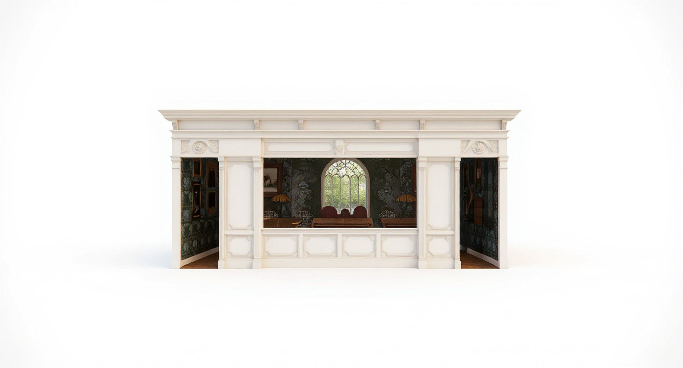 remove the interior elements from inside the structure keep the building on a white background remove all shadows do not make any other changes