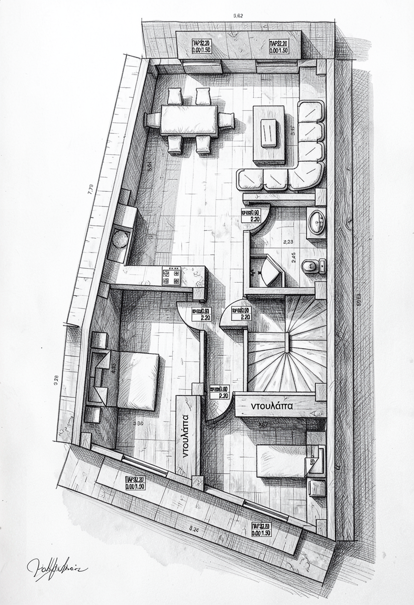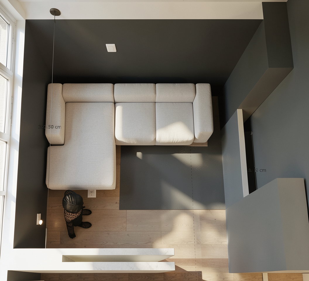 minimalist dark brown simple etheral interior in charlotte taylor style dramatic light keep wooden colorful table design aerial view add two miimalist wooden chairs