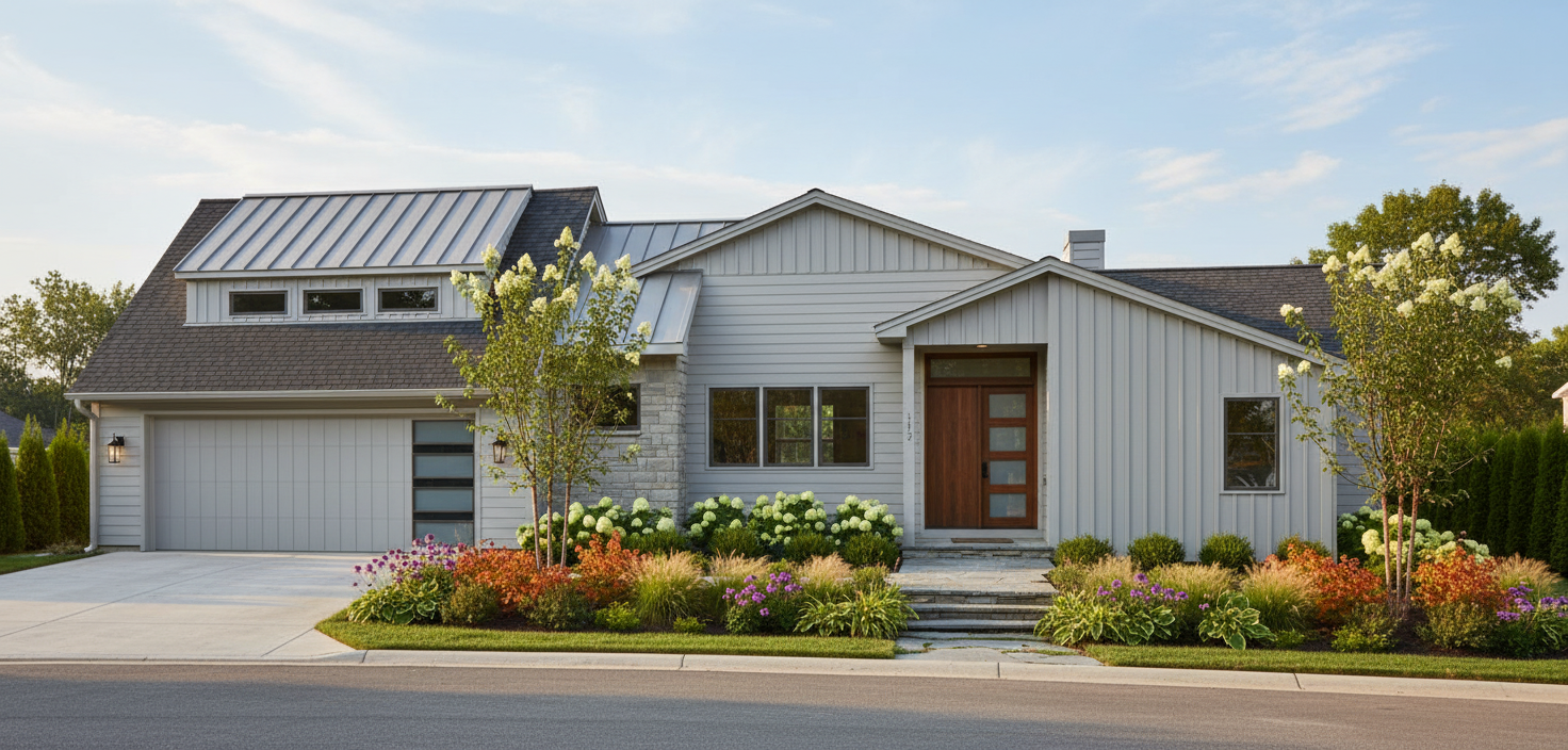a cozy modern living room with a warm brown wooden dining table and matching chairs a striking red and orange velvet sofa for a pop of color and a classic patterned rug in muted earthy tones contemporary artwork with orange and earthy motifs hangs on the walls blue wall cabinets add a touch of calm and an elegant beige and brown pendant lamp hangs above the table a deep green leafy plant in the corner adds a touch of freshness