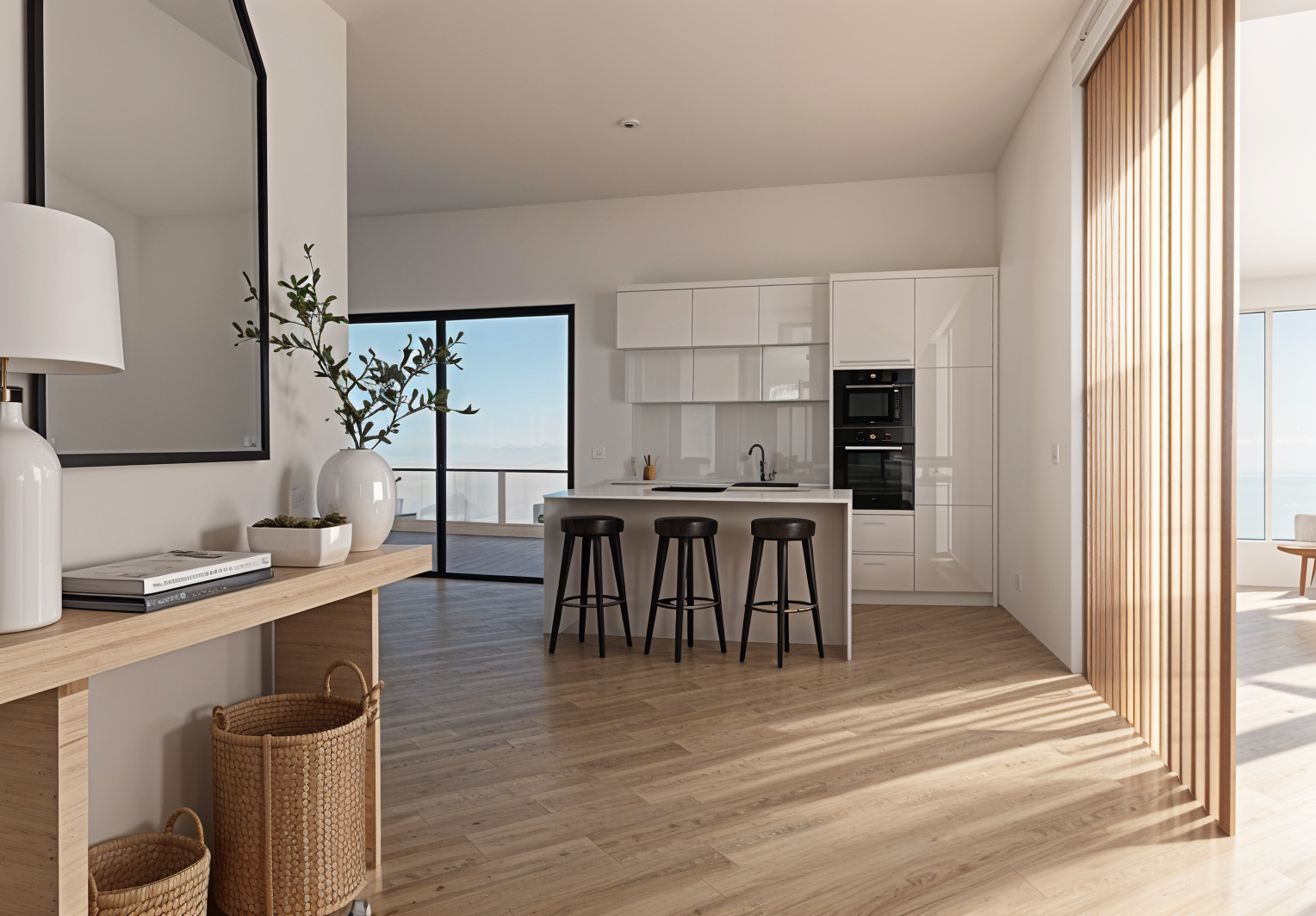 modernist exterior shot create an architectural rendering with dark tone brick orange wood paneling and black metal siding in a clean suburban area architecture