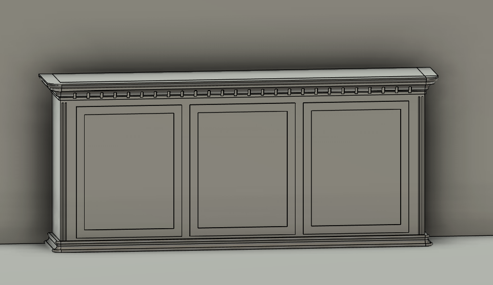 this is hallway cabinet add three handles to the large cupboards change the style to be edwardian themed