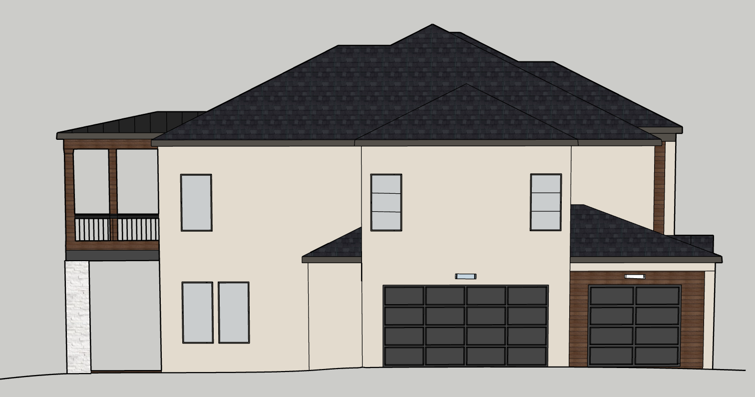 do not change any materials do not move any windows doors or rooflines do not change any colors materials or finishes but make the garage doors solid black with no windows