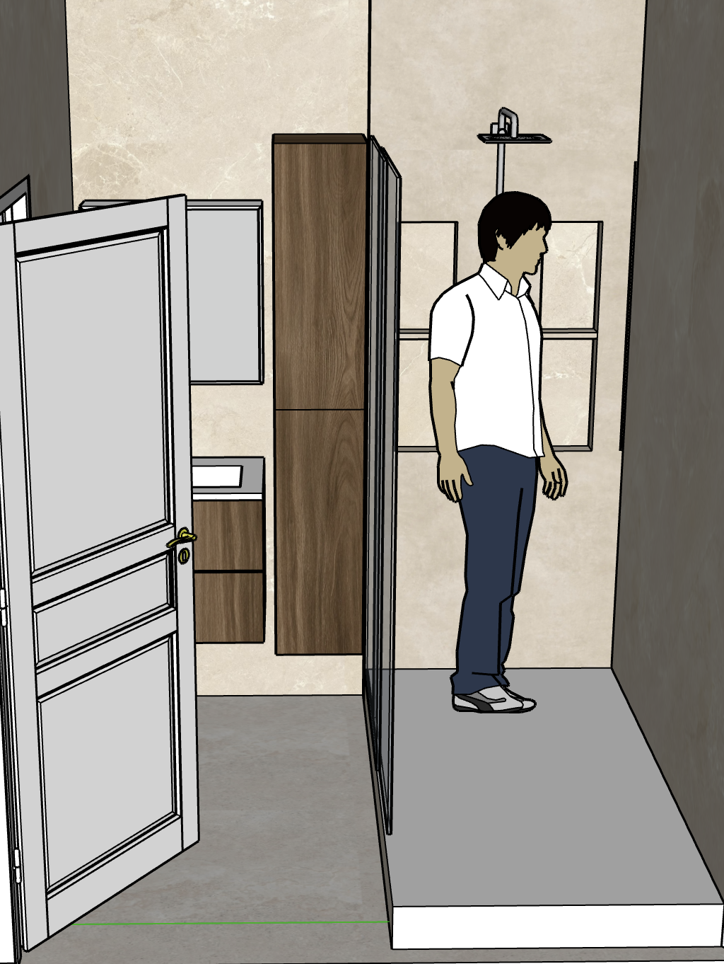 salle de bain moderne intemporelle niches pour produits type shampoings gel douche pas de fenetre douche