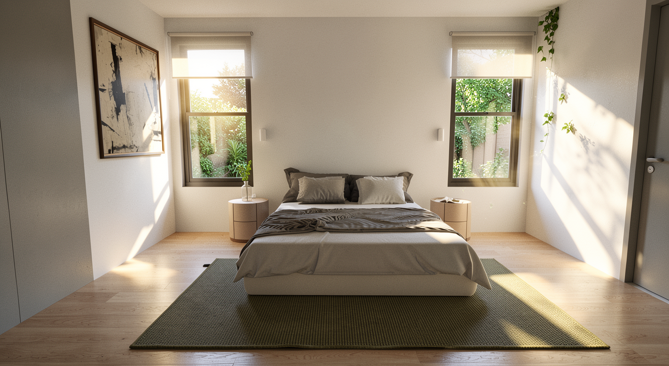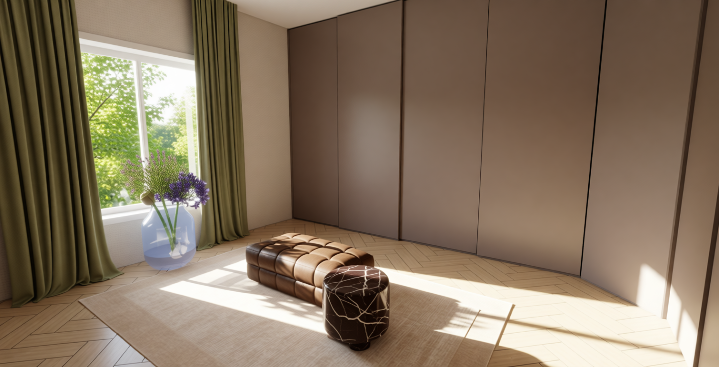 important preserve the existing geometry and the existing context exactly as provided preserve the existing windows do not add new windows do not modify alter reinterpret add remove scale or reshape any geometry do not change the site surroundings street layout neighboring buildings vegetation or context elements do not modify geometry scale proportions buildings road layout sidewalks or surrounding context in any way do not modify text soft sunny noon atmosphere diffused neutral natural daylight with subtle tones cinematic architectural mood weak interior lighting 4000k slight glowing from inside large glass surfaces with realistic reflections soft mirror effect environmental reflections of sky and surroundings important do not add new windows wet asphalt people and cars at exterior with motion blur