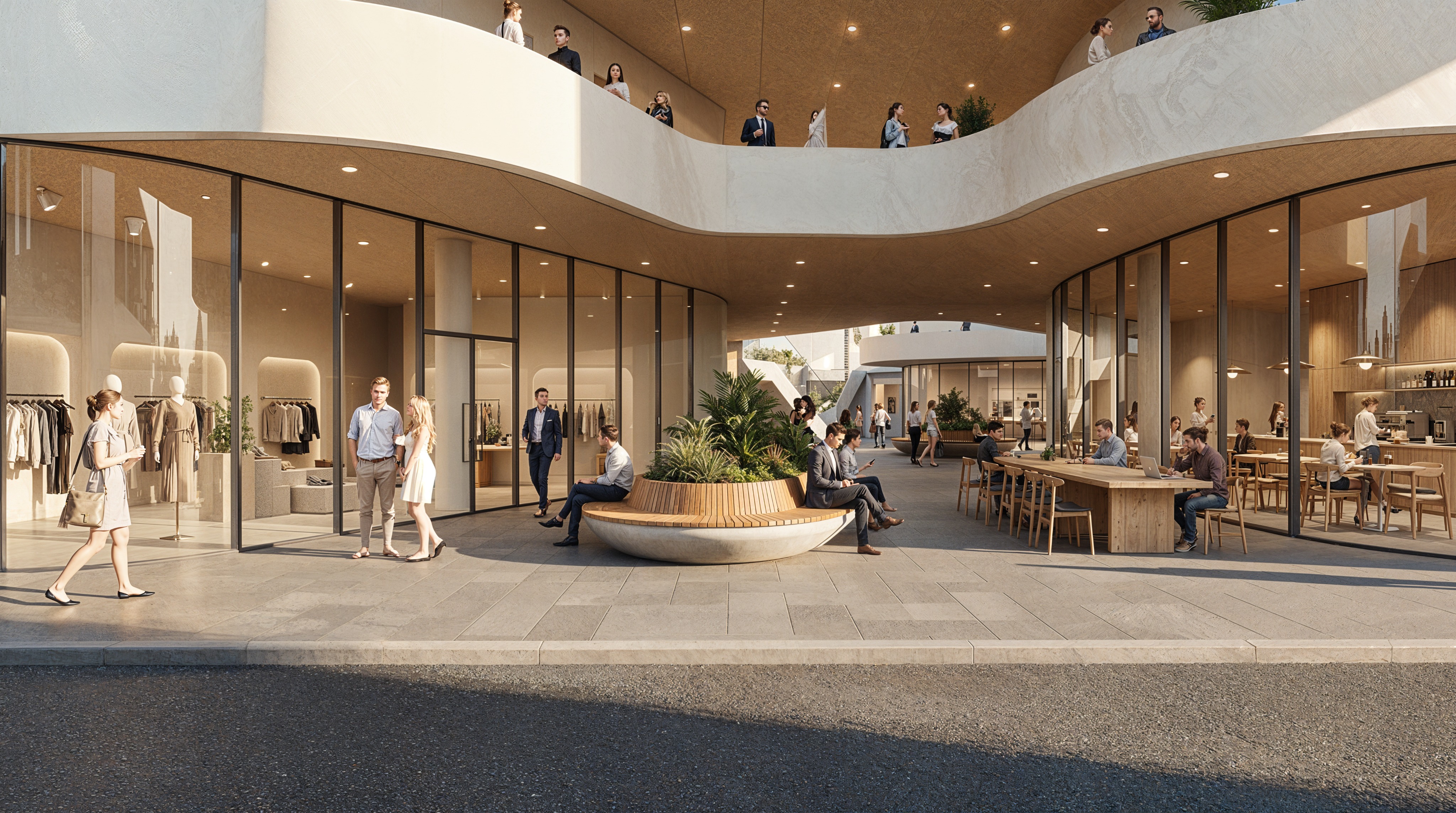 change the lighting inside the shops to reflect the fucntion of the different spaces
