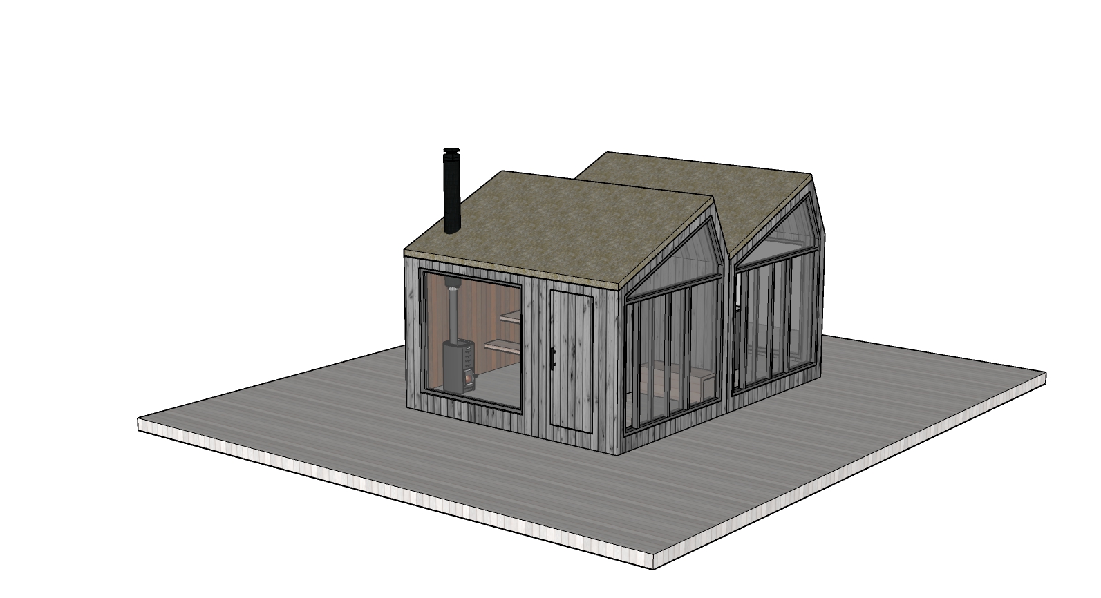 grainy watercolor render of timber frame building with reclaimed wood siding watercolor trees in the background extensive watercolor landscaping surrounding the building