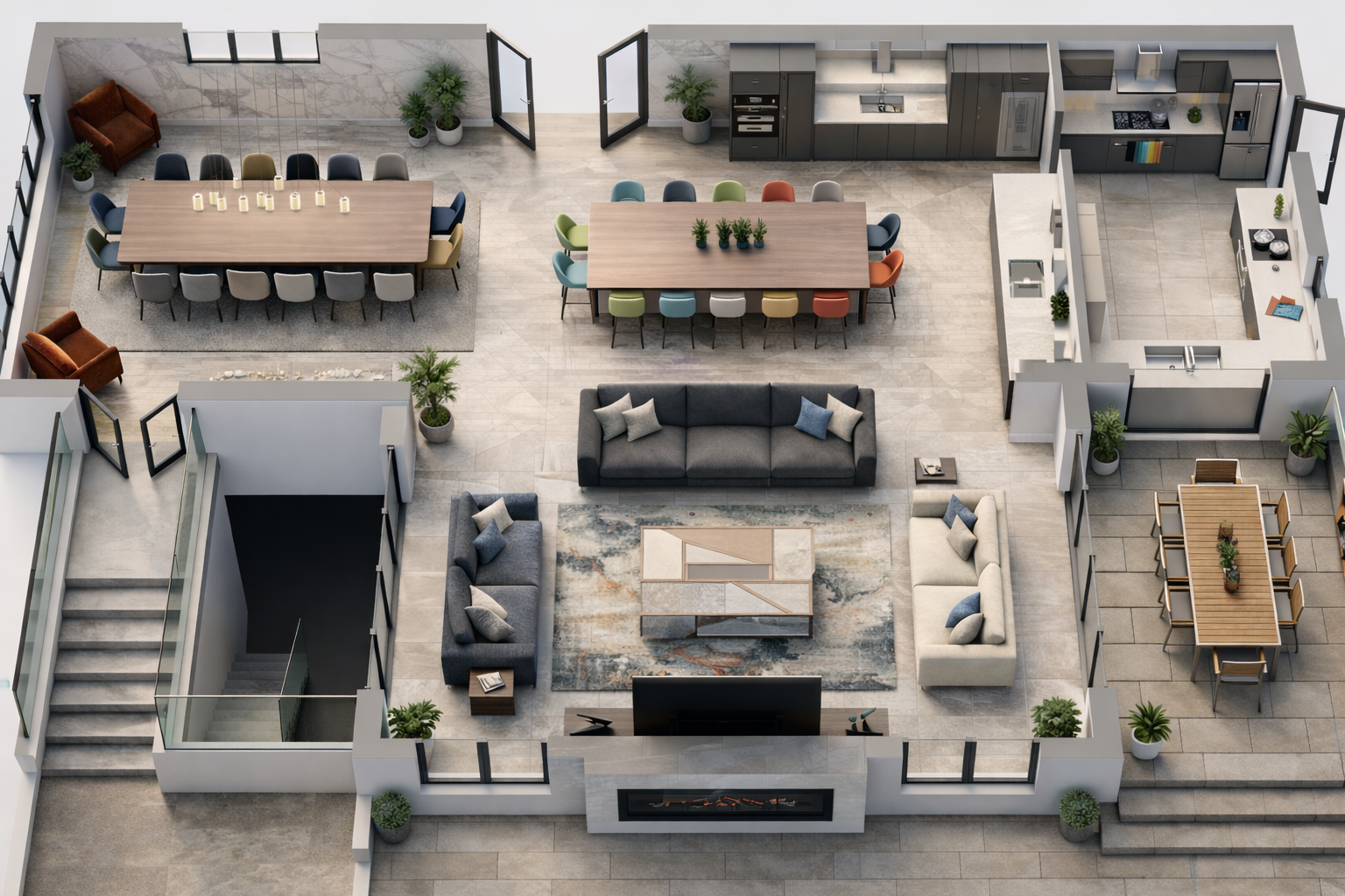 modernist exterior shot create this into a modern and classy vibe using stone and marble tones architecture