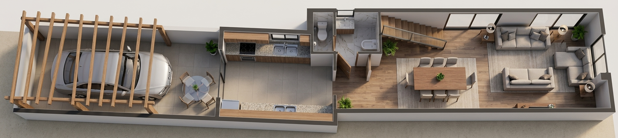 need to render this elevation black windows and door frames with black gutters and railing make the body of house greek villa from sherwin williams roof needs to be mix of standing seam beige metal roof and light wood shingles can you add some accents of darker beig beach green on the horizontal siding note on the second and third floors on the right side those are open porches that will be facing the ocean the landscaping needs to be tropical remove any green on the house also the car is to be showing on a side view as the driveway is coming from left hand side