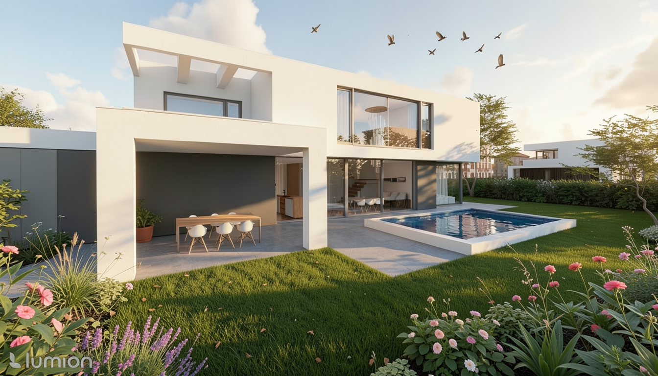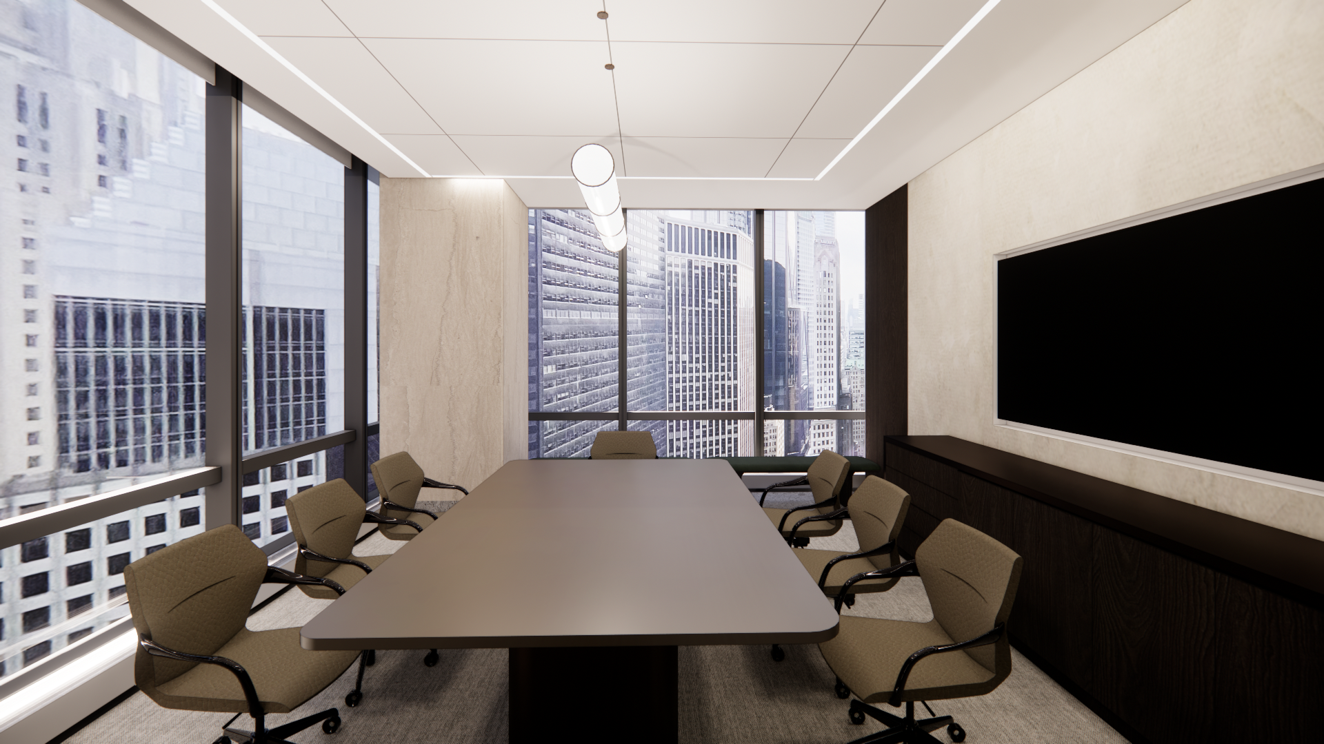 provide a photorealistic rendering keep all the elements proportions and materials as they are provide north daylight through the glass only