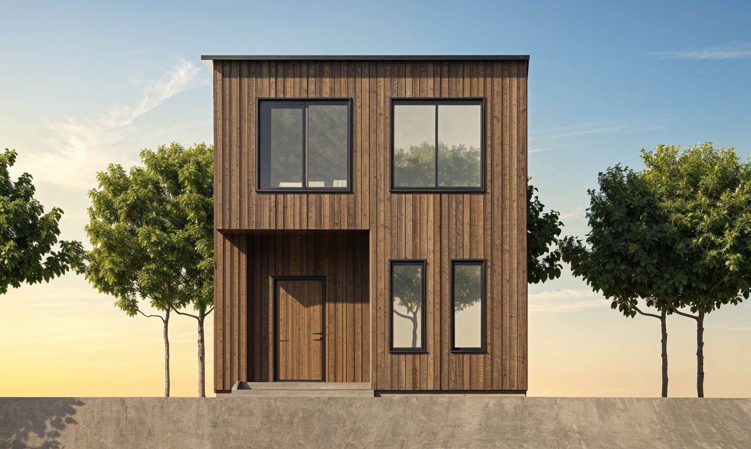 modernist exterior shot change robinia posts to african teak wood keep white background architecture